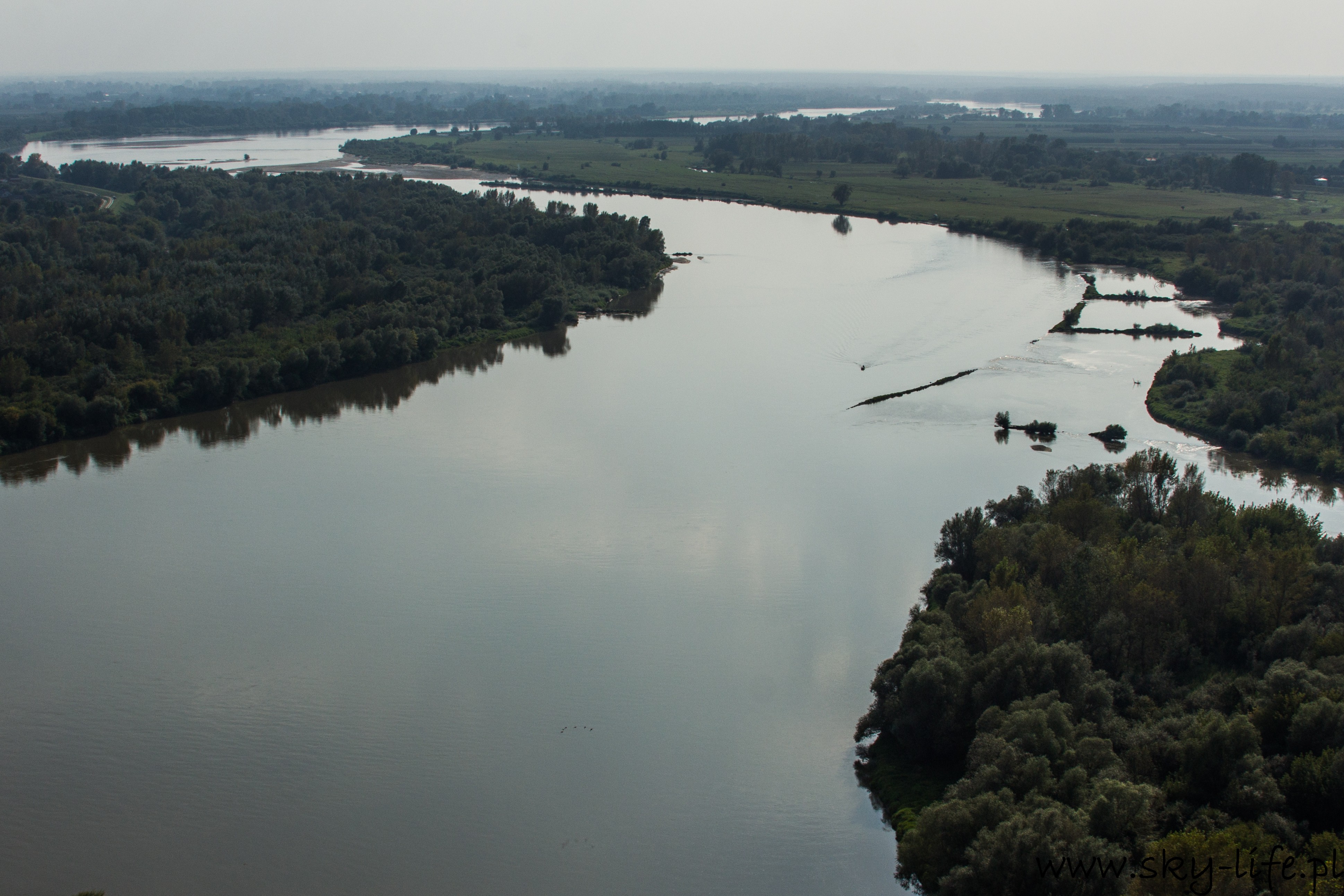 2014-09-07 15.21.48-1Po Kazimierzu Dolnym ustawiłem GPS na kolejny punkt – Iłżę, jednakże wcześniej trzeba poszukać miejsca do lądowania i dotankowania paliwa, które zabrałem ze sobą. Z ostatniej wyprawy (ponad rok temu) pamiętałem, że zaraz obok Kazimierza jest kawałek pola, które ma status lądowiska trawiastego, więc postanowiłem to sprawdzić. Niestety pole nie nadawało się do lądowania – bardzo wysoka trawa, powierzchnia zryta (prawdopodobnie przez dziki), nawet z rękawa nic nie zostało. 2014-09-07 16.53.11-1No nic, lecimy dalej – po drodze się coś znajdzie. Zaraz obok znalazłem długą wyspę na Wiśle (zdjęcie po lewej), krążyłem nad nią sporo, bo strasznie mnie kusiła na lądowanie, jednakże także tym razem musiałem odpuścić – trawa była skoszona, ale powierzchnia bardzo nierówna i mocno piaszczysta. Trudno znajdzie się coś po drodze do Iłży. Po około 20 minutach lotu zauważyłem ładne pole pośrodku zupełnie… niczego, a co mnie bardziej zaciekawiło, to fakt iż były na nim wyraźne urywające się ślady trzech kół – ktoś już tu lądował i startował. Po sprawdzeniu okazało się, że jest ok – trawa nie za wysoka, więc można lądować. Lubię takie miejsca, cisza, spokój, można sobie odpocząć i dokładnie wszystko sprawdzić bez ciekawskich oczu. Po około 15 minutach byłem już w dalszej trasie do Iłży.
