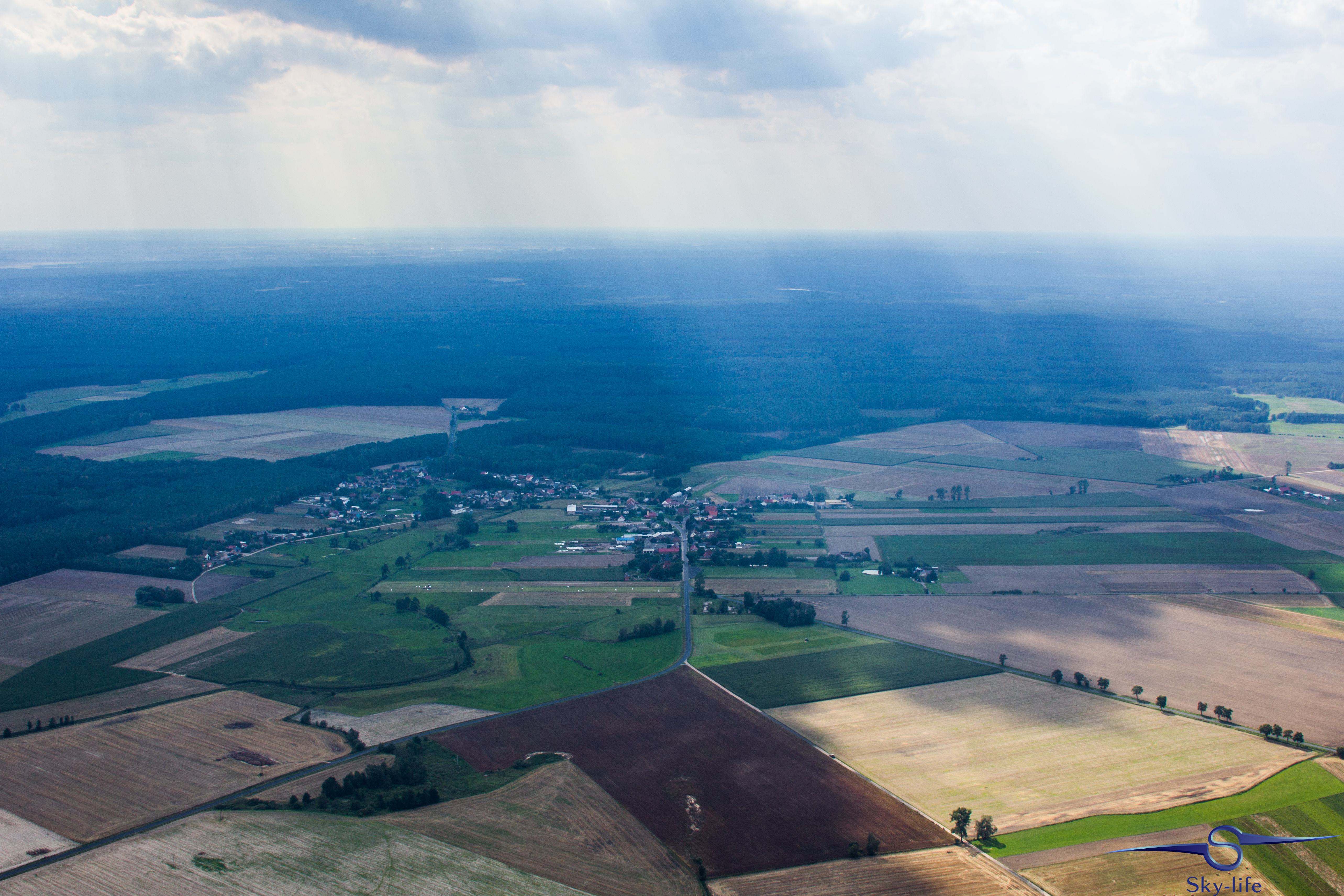 Trasę ponad 420km zaplanowałem z dwoma postojami – jeden w Krośniewicach niedaleko Kutna, a drugi w Obornikach Wlkp. Trasa do Krośniewic minęła bardzo spokojnie, powietrze wygładzone i bez znacznych turbulencji. Warunki delikatnie się pogorszyły już po starcie z Krośniewic i niestety pozostały takie przez całą drogę. Po kolejnych prawie 2h byłem już w Obornikach. Tutaj, korzystając z gigantycznej gościnności, postanowiłem zatankować się do pełna i dowiedzieć, jak mogę przeskoczyć ostatni odcinek – do Trzebicza. Nie jest on długi (około 70km), ale prawie całość lotu po prostej wiedzie nad gęstymi lasami. Ja osobiście chciałem ominąć go od południa i dopiero przed Trzebiczem przeskoczyć na drugą stronę, ale korzystając z rad lokalnych pilotów postanowiłem zrobić odwrotnie. Najpierw przeskoczyć przez las i torfowiska, a później północną stroną lasu, doliną Noteci do Trzebicza. Trasa się troszeczkę wydłuży, ale nie na tyle, żeby ryzykować przelot nad lasem. Poniżej kilka zdjęć z przelotu – począwszy od województwa mazowieckiego, poprzez łódzkie, kujawsko-pomorskie, wielkopolskie aż do lubuskiego.