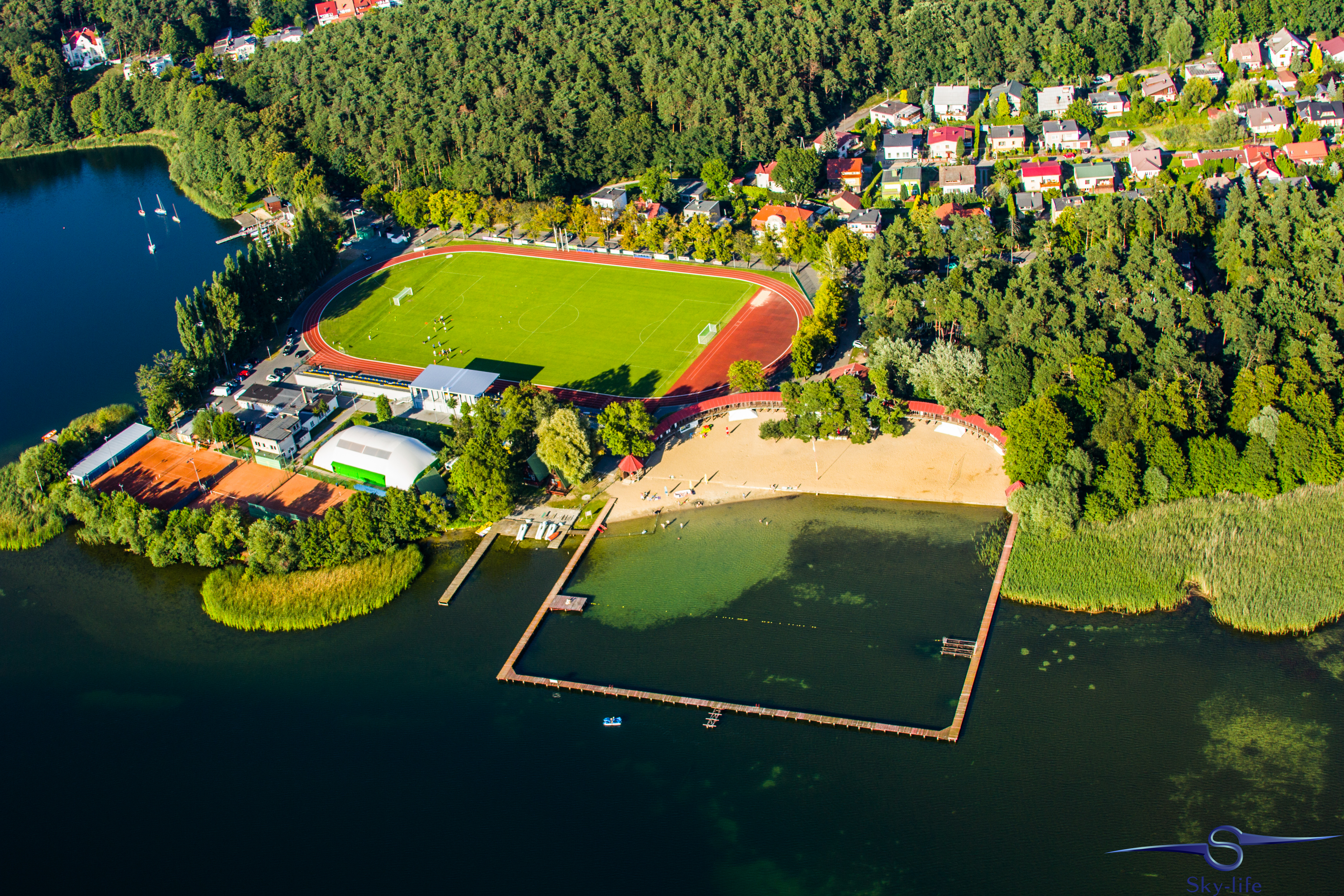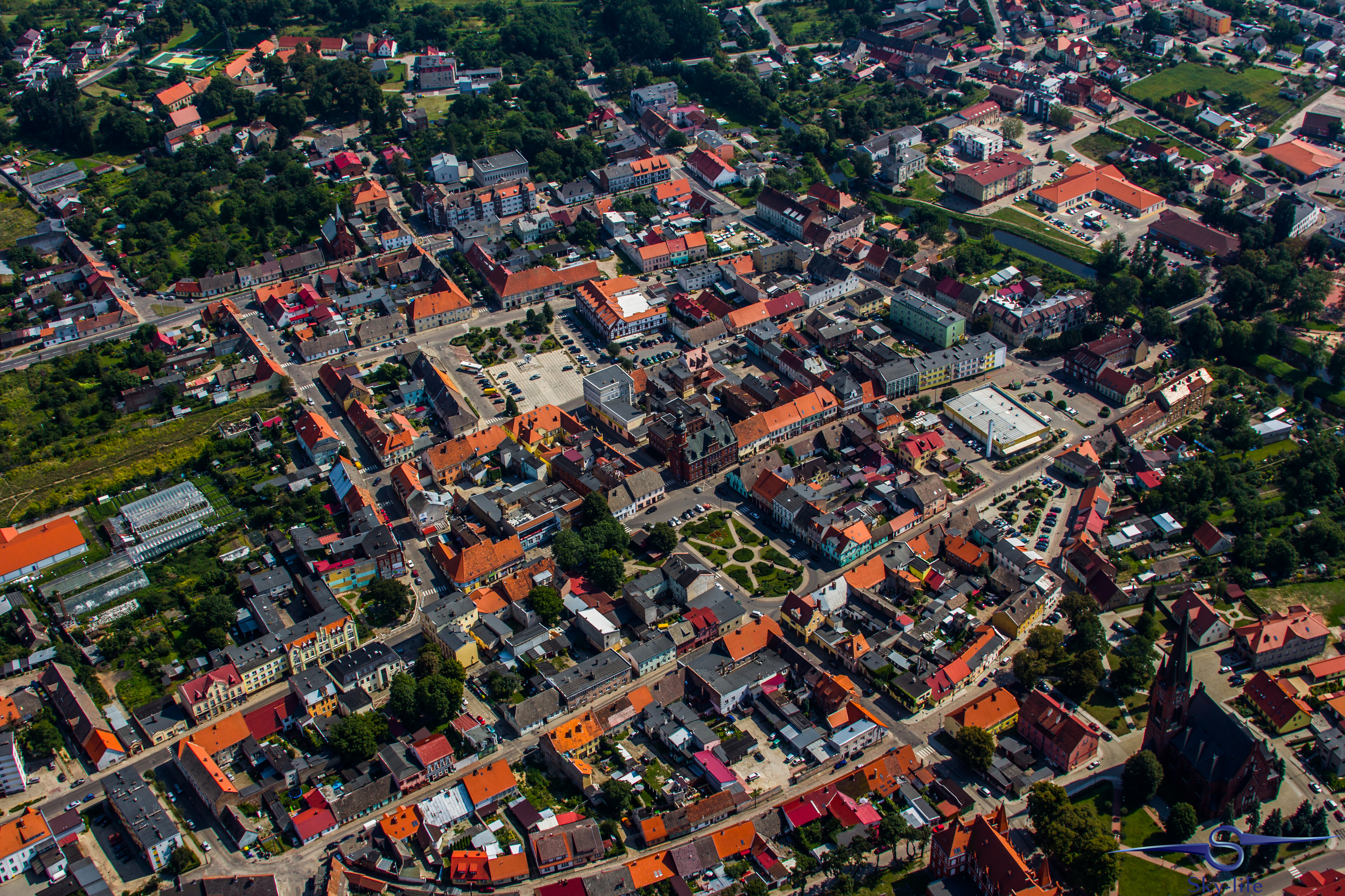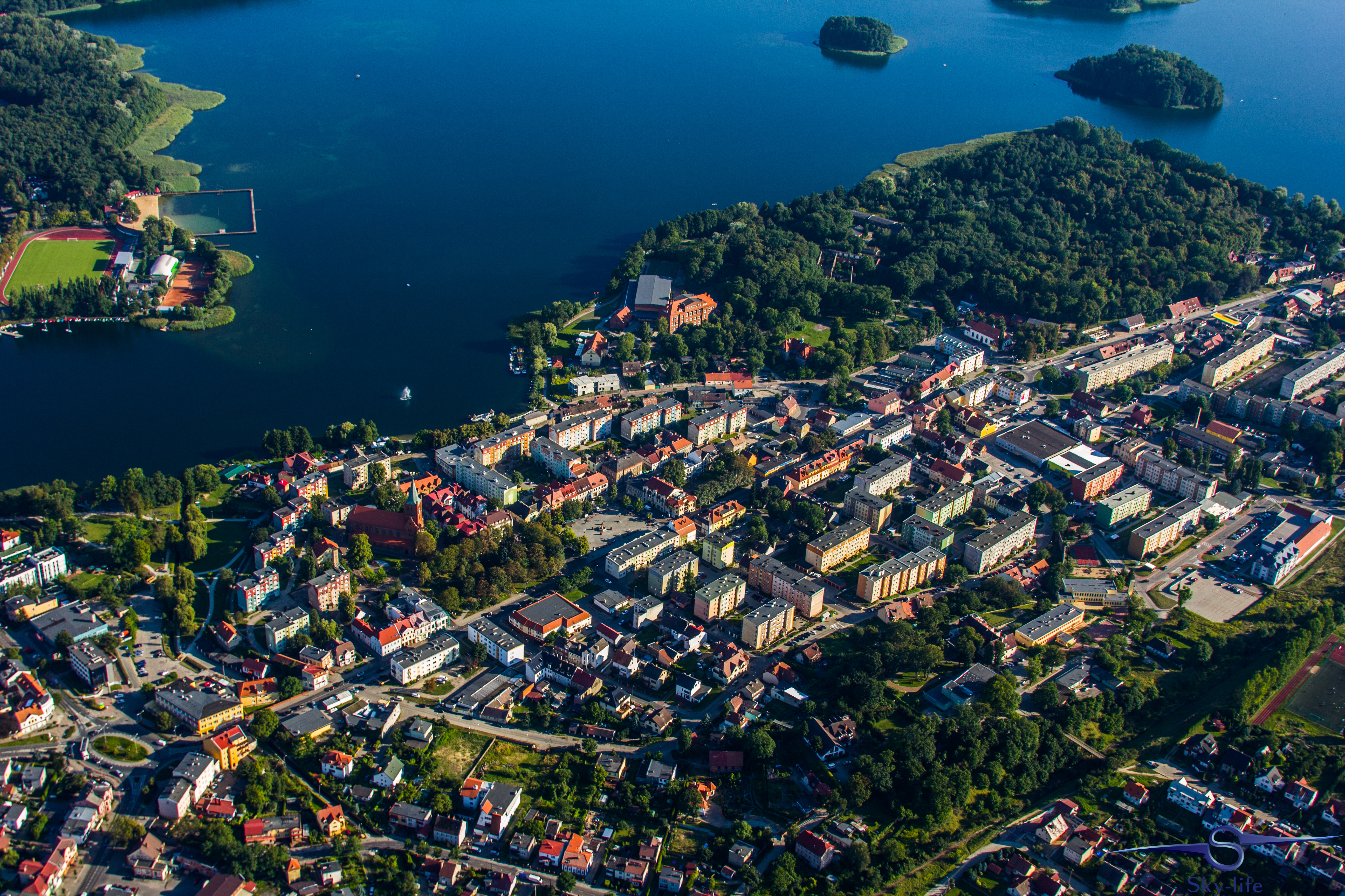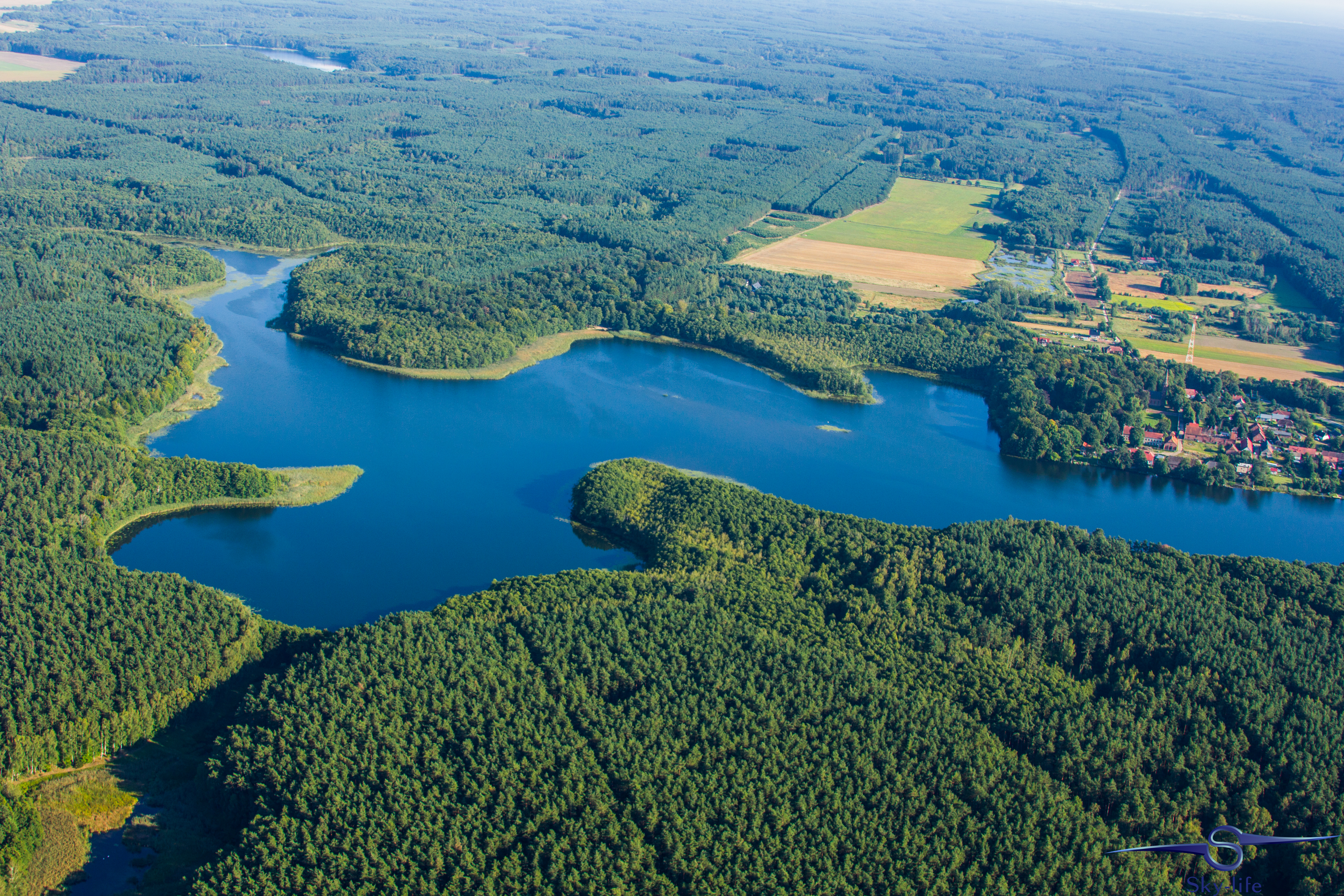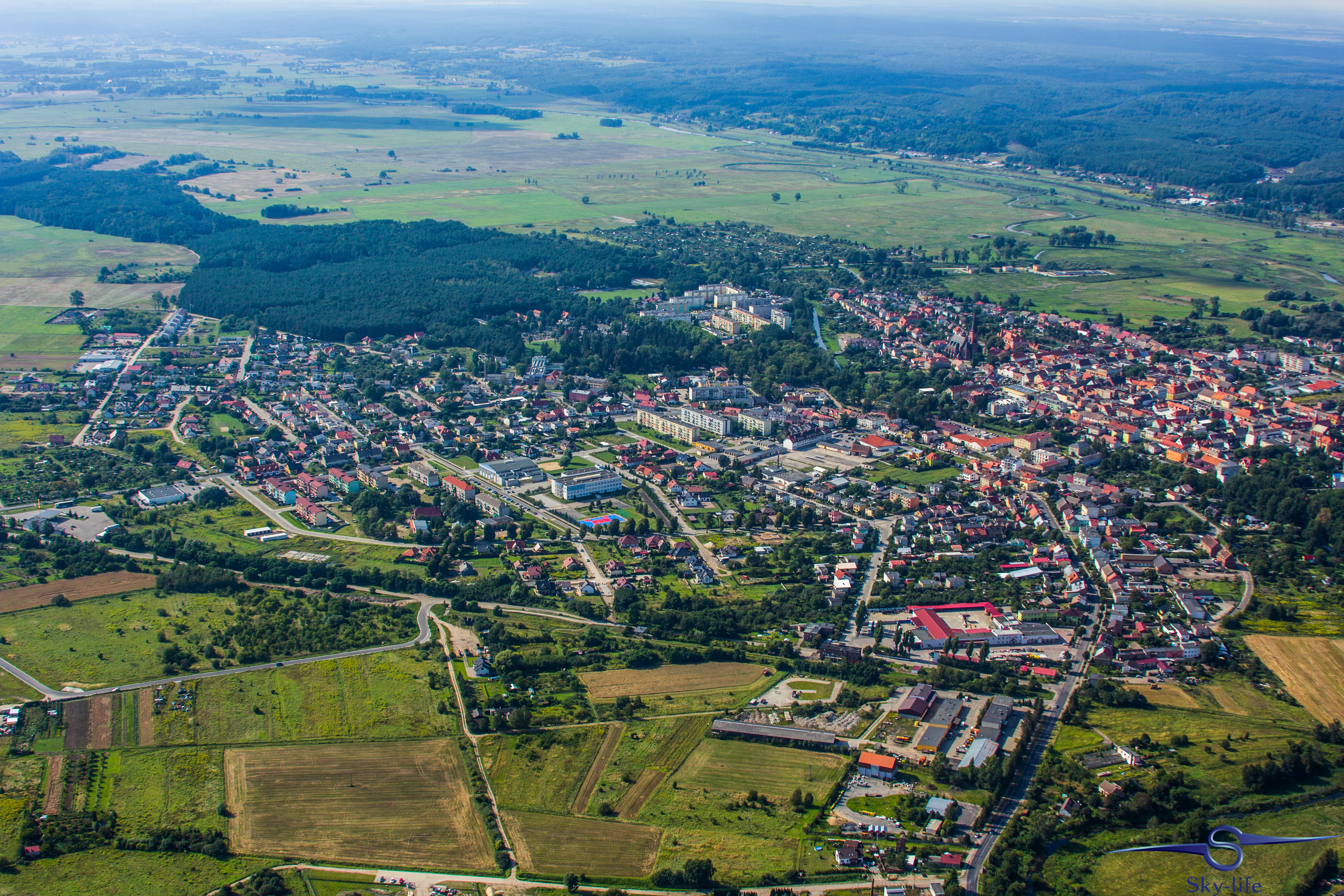 Jeszcze tego samego dnia wybrałem się odwiedzić kolejne województwo: zachodnio-pomorskie. A konkretnie urokliwe miasto w jego południowej części – Barlinek. Zależało mi na tym szczególnie, gdyż właśnie stamtąd pochodzi moja rodzina. A jak już tu jestem to przelecenie dodatkowych 100km nie zrobi mi różnicy, tym bardziej, że tak jak wspominałem – dzięki gościnności OSL Oborniki jestem zatankowany pod sam korek. Wybór trasy już był znacznie łatwiejszy – przez Sztrzelce Krajeńskie, wschodnią stroną Barlinecko-Gorzowskiego Parku Krajobrazowego aż do samego Barlinka. Nad miastem kilka kręgów na znacznej wysokości (około 1000m) i powrót tą samą drogą. Muszę przyznać, że Barlinek widziany z powietrza jest chyba jeszcze ładniejszy niż widziany z ziemi. Poniżej kilka zdjęć.