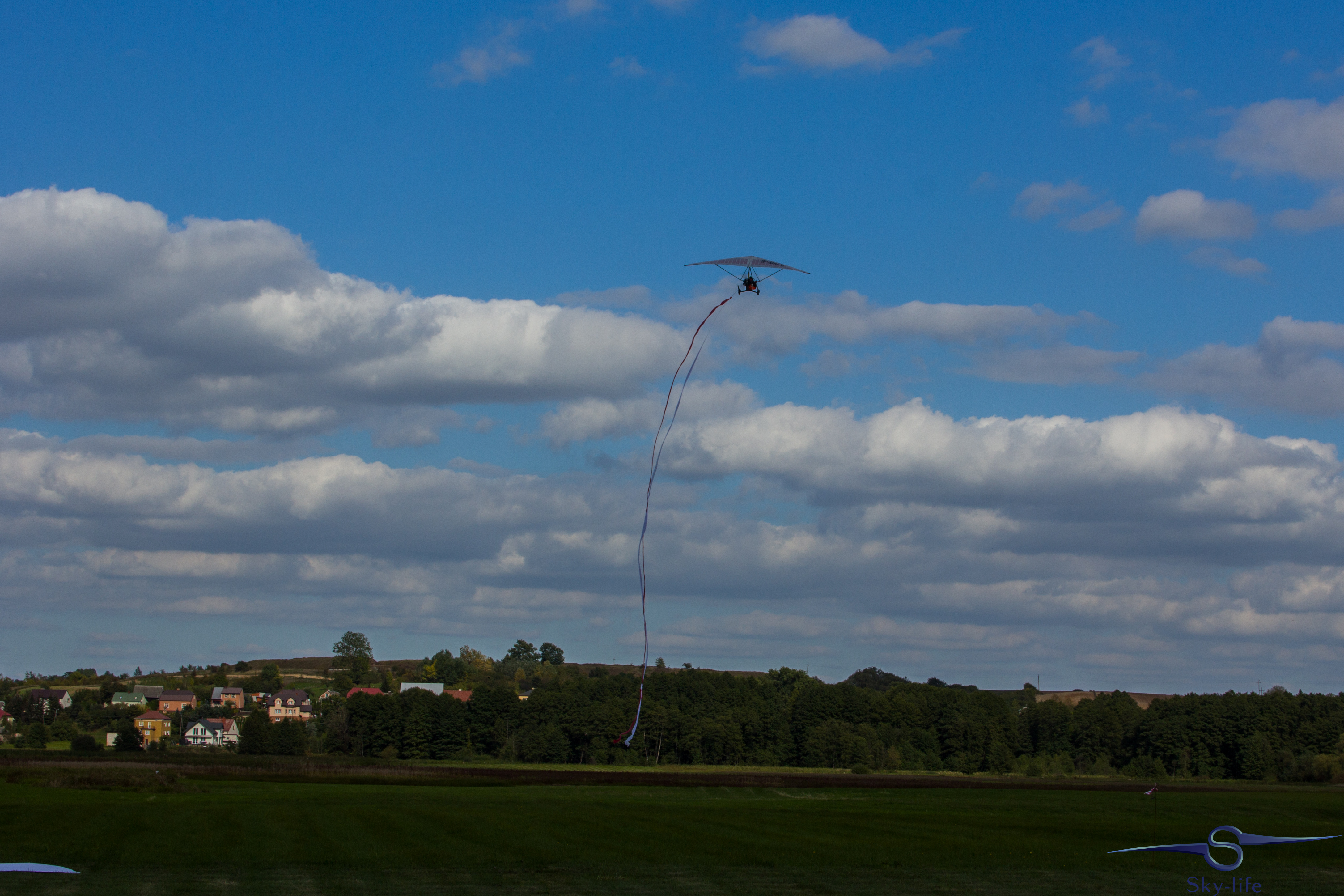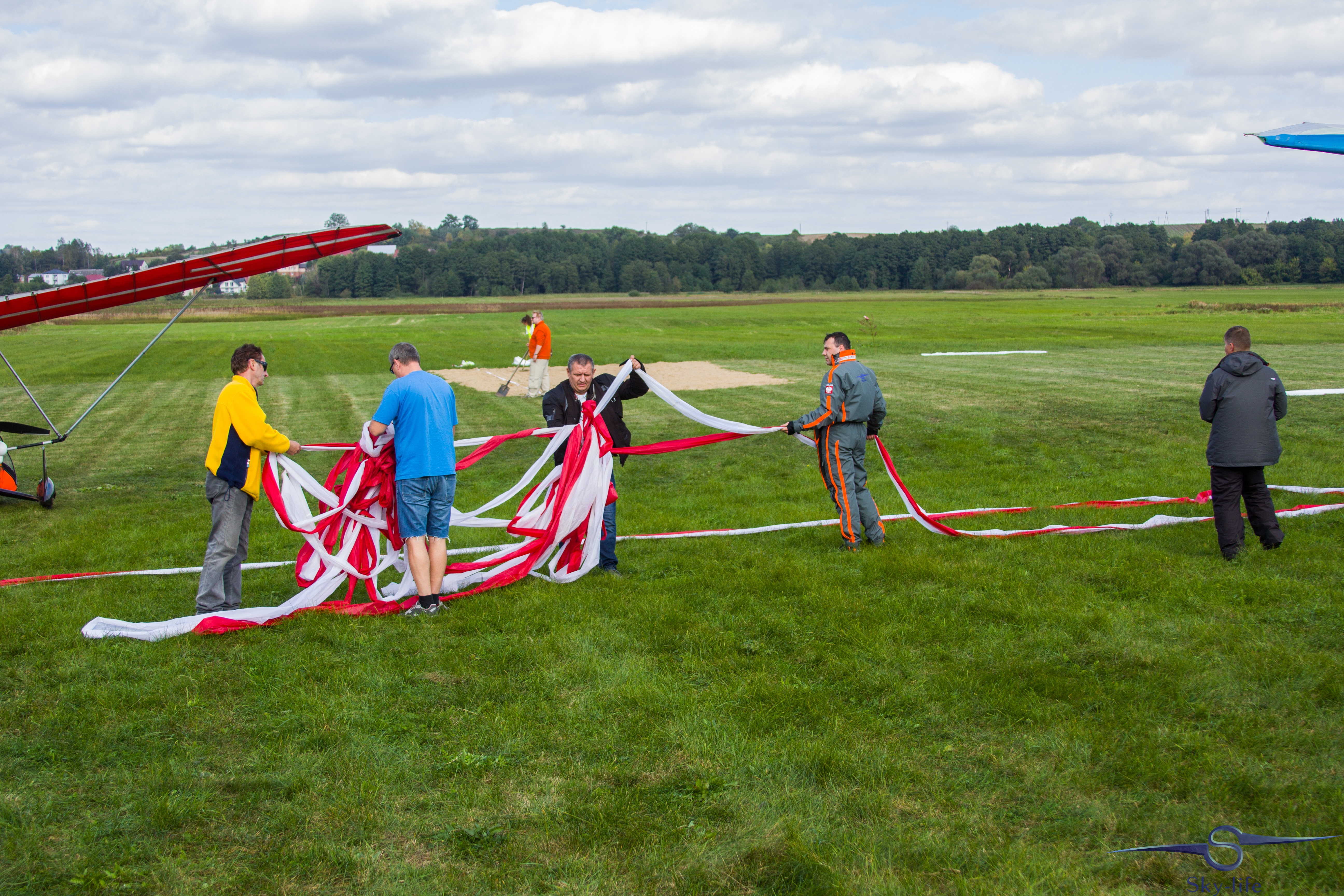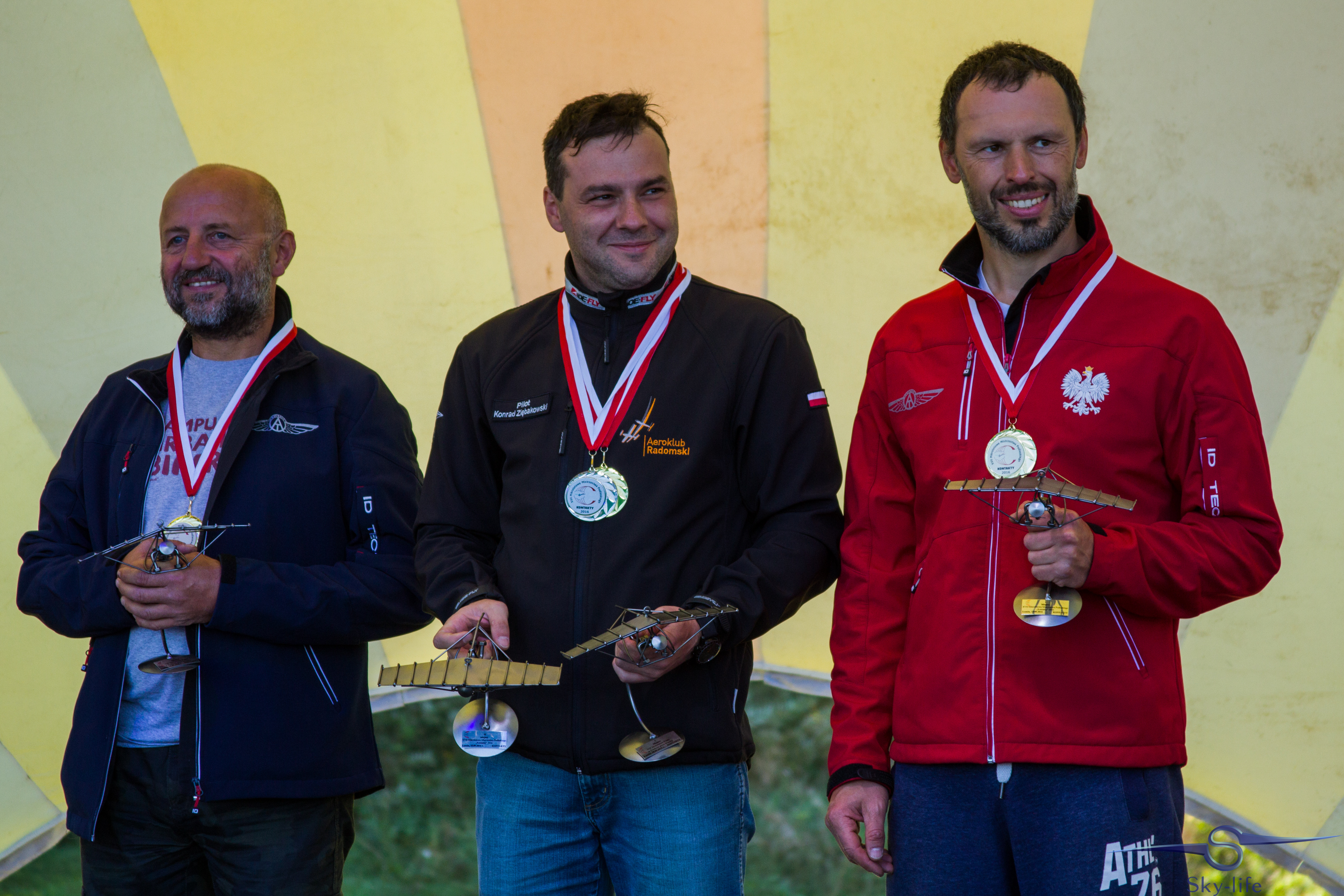 2016-09-17-14-25-01Do Łomży dolecieliśmy po oficjalnym rozpoczęciu, ale na szczęście przed rozpoczęciem konkurencji – lądowania na celność. Zaraz po przylocie, postanowiłem zrobić jeszcze pokaz dla publiczności – lot z 200m flagą Polski. Podczas prezentacji dostałem informację przez radio, żebym kończył, bo zaraz ma się odbyć konkurencja. I tak po jednej konkurencji nawigacyjnej na Mazurach, następnie 1h locie do Łomży, pokazie z flagą, przystąpiłem do lądowań na celność. Warunki nie rozpieszczały, ale udało się mi zdobyć srebrny medal! Jest dobrze! Tą samą pozycję wywalczyłem w zeszłym roku, więc weekend już można zaliczyć do udanych.