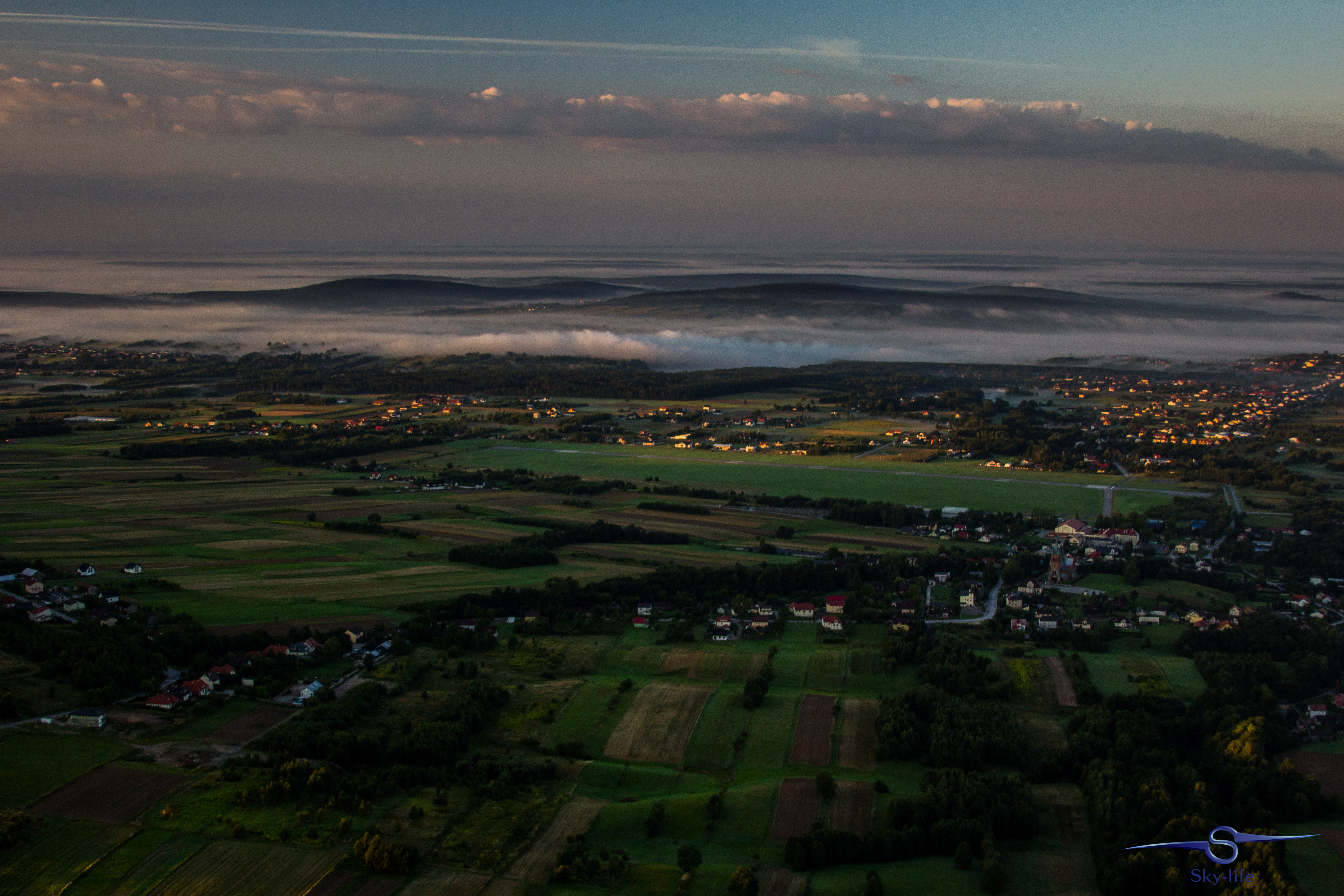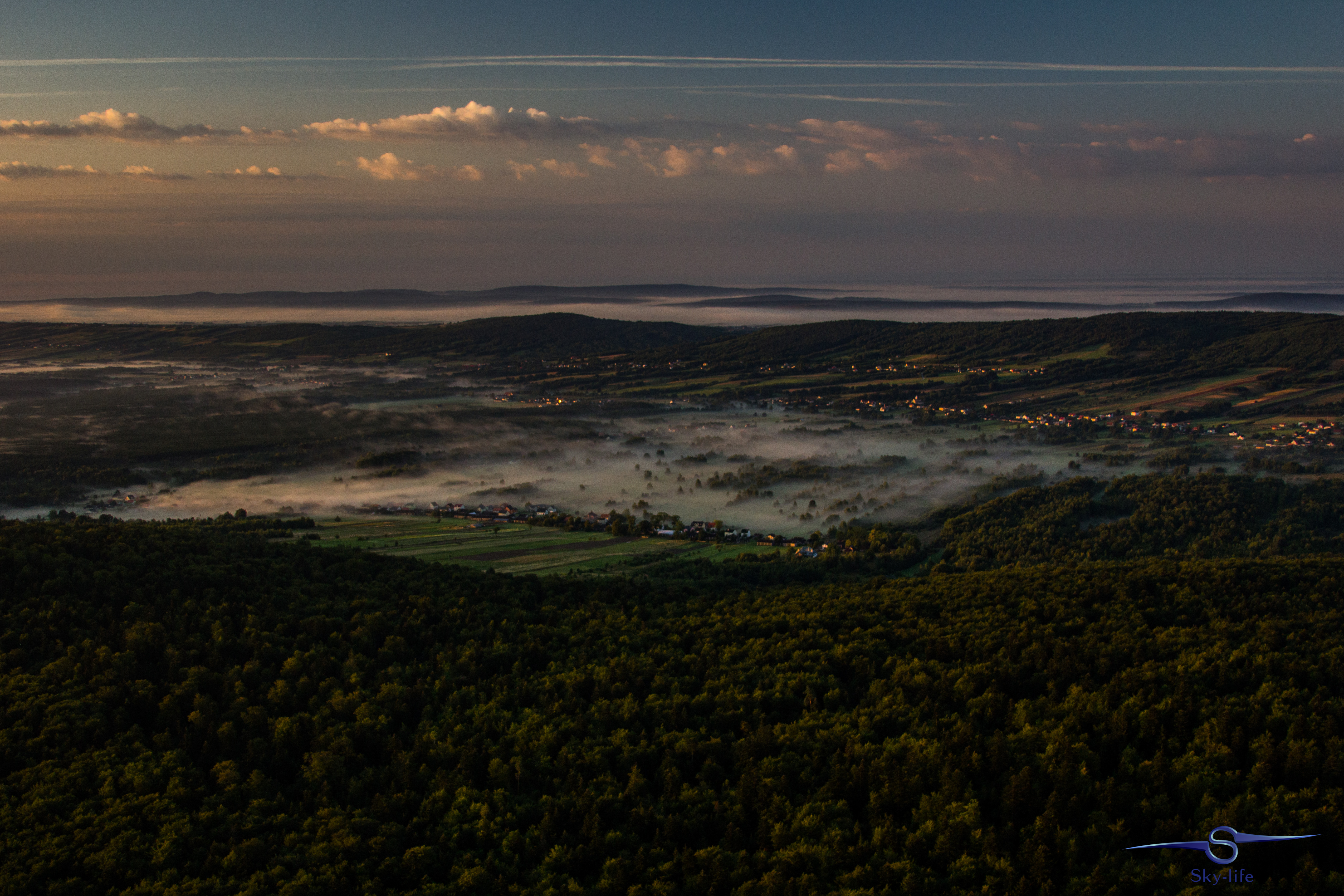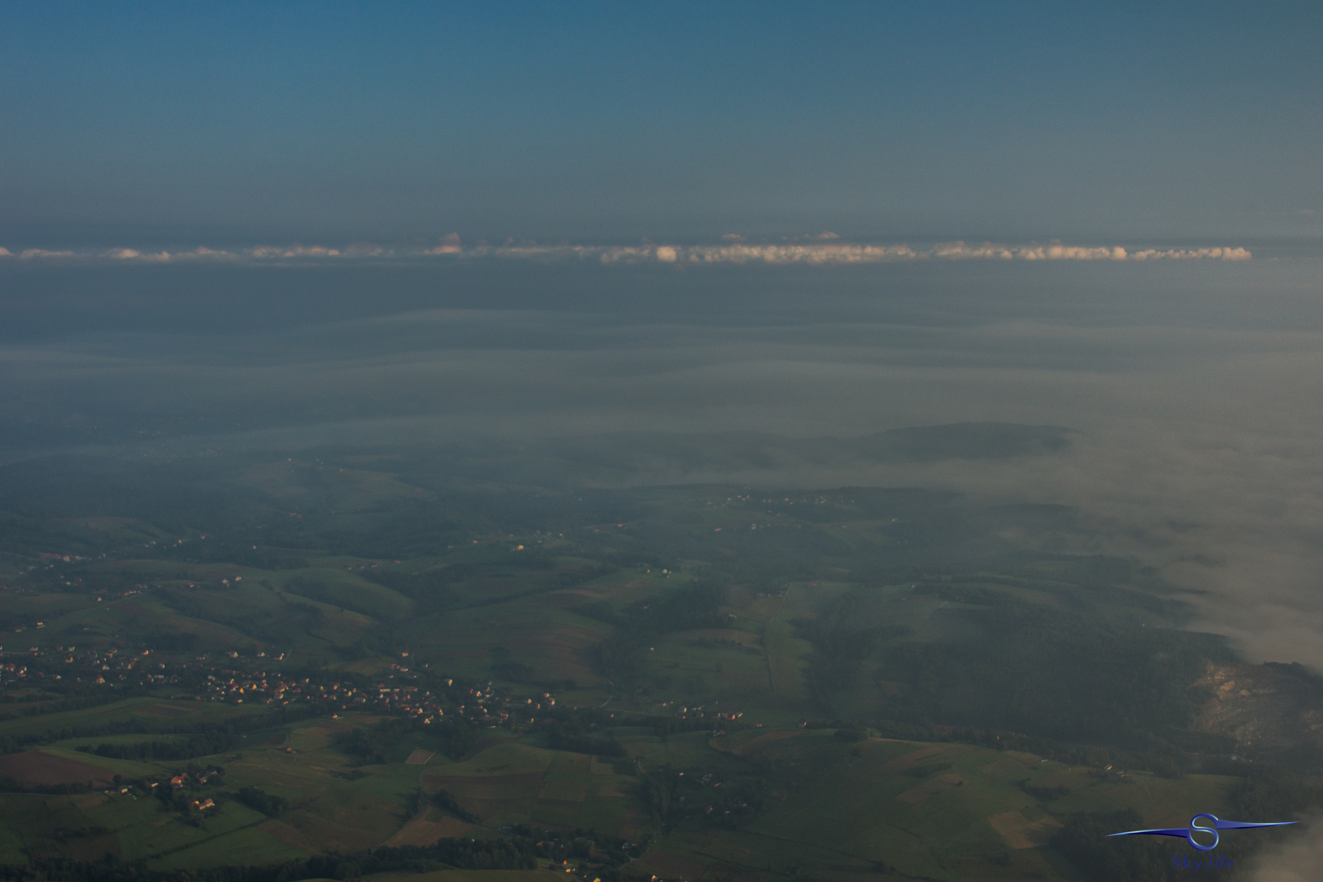 Standardowo pogoda pokazała swoje możliwości i postanowiła się załamać dokładnie na zaplanowany termin wylotu. Może by się udało po południu, ale decyzja już zapadła – lecę następnego dnia z samego rana. Jak myśli się o jakimś wyjeździe, to podróż na miejsce docelowe i z powrotem jest tylko przeszkodą i koniecznością. W przypadku lotnictwa – jest przyjemnością. I to nawet tak wielką, że czasami sam cel jest mało istotny – ważny jest przelot. W przypadku mojej wyprawy „połamałem” trasę wzbogacając ją o kilka elementów. Zaplanowałem 4 duże lotniska po trasie – Kielce, Pińczów, Kraków-Pobiednik i Nowy Targ. Na dwóch z nich nie będzie problemów z paliwem (Pińczów i Kraków), gdyż stacja benzynowa jest zaraz za płotem lotniska. Wariantów tras było bardzo dużo – w zależności od siły wiatru mogę lądować na każdym z nich lub na żadnym. Wszystko zweryfikuje pogoda nad ranem. Start mocno przed 5 rano, jeszcze według zasad VFR Noc. Pogoda marzenie! Całkowity brak wiatru, przepiękne poranne mgły, wstające słońce – widok jedyny w swoim rodzaju. Pierwszy docinek – do Kielc przez Góry Świętokrzyskie to tylko bajeczne widoki z porannymi mgłami. Całkowity brak wiatru i turbulencji – po prostu masełko, że aż można przysnąć. Na lotnisku w Kielcach podchodzimy tylko do low-pasa, bez lądowania i od razu obieramy kurs na Chęciny. Po drodze przepiękny widok Kielc budzących się z porannej mgły. Nad Chęcinami tylko jedno okrążenie i zmiana kursu na Pińczów. P drodze ponownie poranne mgły – tym razem od malowniczej Nidy. Pińczów na szczęście bez mgieł i można bezpiecznie lądować. W sumie tylko na odpoczynek, bo paliwa bez problemu wystarczy do Krakowa. Po starcie, mgieł już jest znacznie mniej, ale to prawdopodobnie przez krajobraz – teren robi się coraz bardziej pagórkowaty i coraz mniej liczne lasy ustępują miejsca polom uprawnym. Po około 45 minutach już witamy się na radiu z Pobiednikiem i ustalamy warunki lądowania – przed sekundą wystartował samolot ze spadochroniarzami, więc jak mamy lądować to teraz. Szybki, ciasny krąg i po 2 minutach już stoimy pod stacją benzynową. Tankujemy tak, żeby nam wystarczyło do samego końca trasy, ale i tak planuje jeszcze wylądować w Nowym Targu. Po starcie z Krakowa zaczyna się już „właściwa” trasa i konkretne już górki. Dziwne uczucie lecieć powyżej 4000ft i raz być 300m nad szczytem, by za chwilę być prawie 1000m nad doliną. Tutaj poranne mgły cały czas występują i szczelnie wypełniają prawie każdą dolinę. Na szczęście mgła już się podnosi i bez problemu można utrzymywać kontakt wzrokowy z ziemią. Po niespełna 45 min lotu docieramy do Nowego Targu. Na radiu dowiadujemy się, że możemy mieć problem z lądowaniem bo lotnisko jest przykryte mgłą. Ponieważ mam zapas paliwa na dalszą trasę postanawiam zrobić jeden krąg i zdecydować – jeżeli nie będzie widać lotniska to odlatuje dalej. Okazało się, że wcale nie jest tak źle i bez problemu mogliśmy wylądować. Przed nami ostatni odcinek trasy – na południe w kierunku Zakopanego, później omijamy strefę zakazu lotów nad polskimi Tatrami, przez Bukowinę Tatrzańską, Białą Spiską (SK) i prosto do celu – Nowa Wieś Spiska. Po wlocie w strefę lotniska wywołujemy: spiska prevádzka, sierra papa… :D