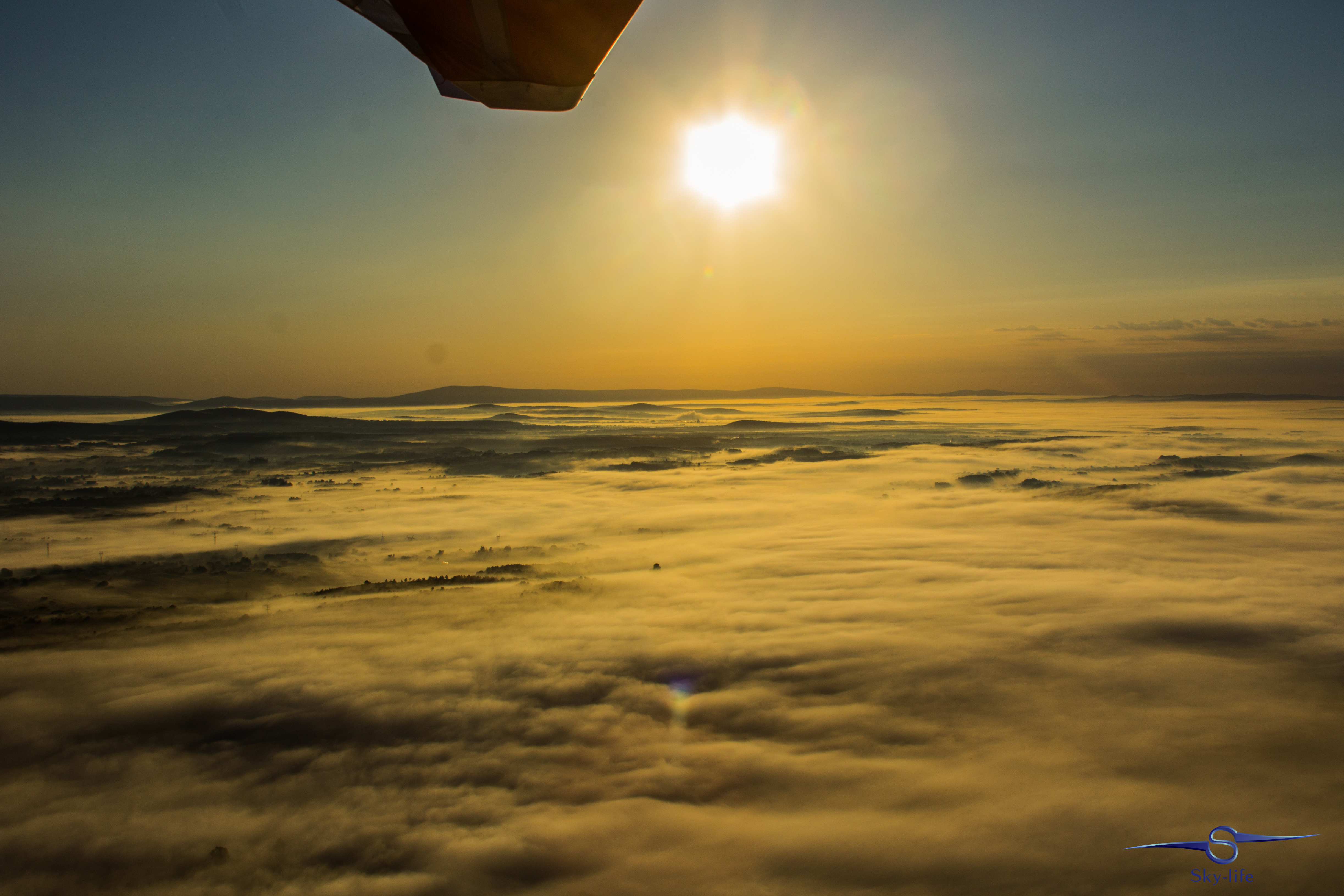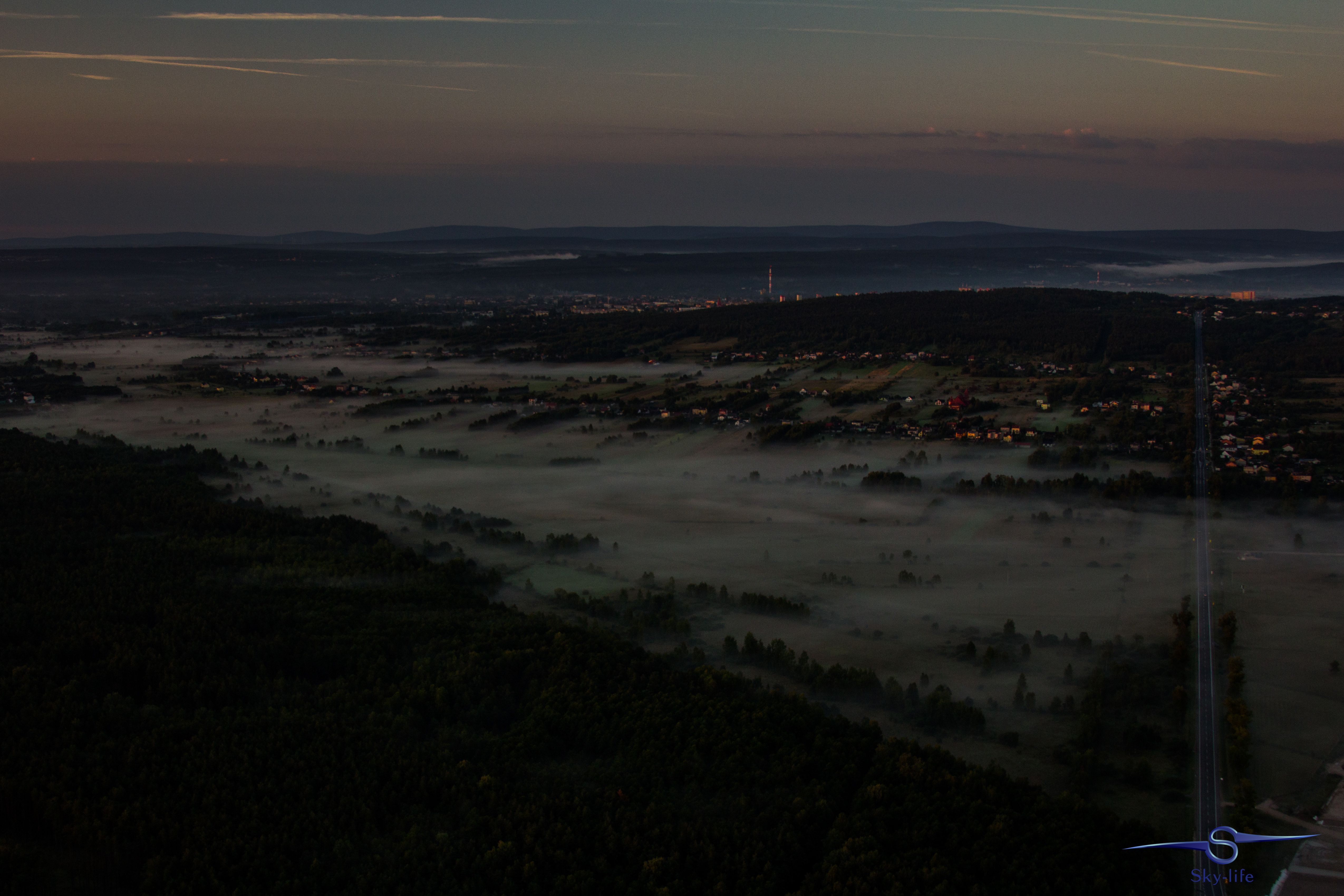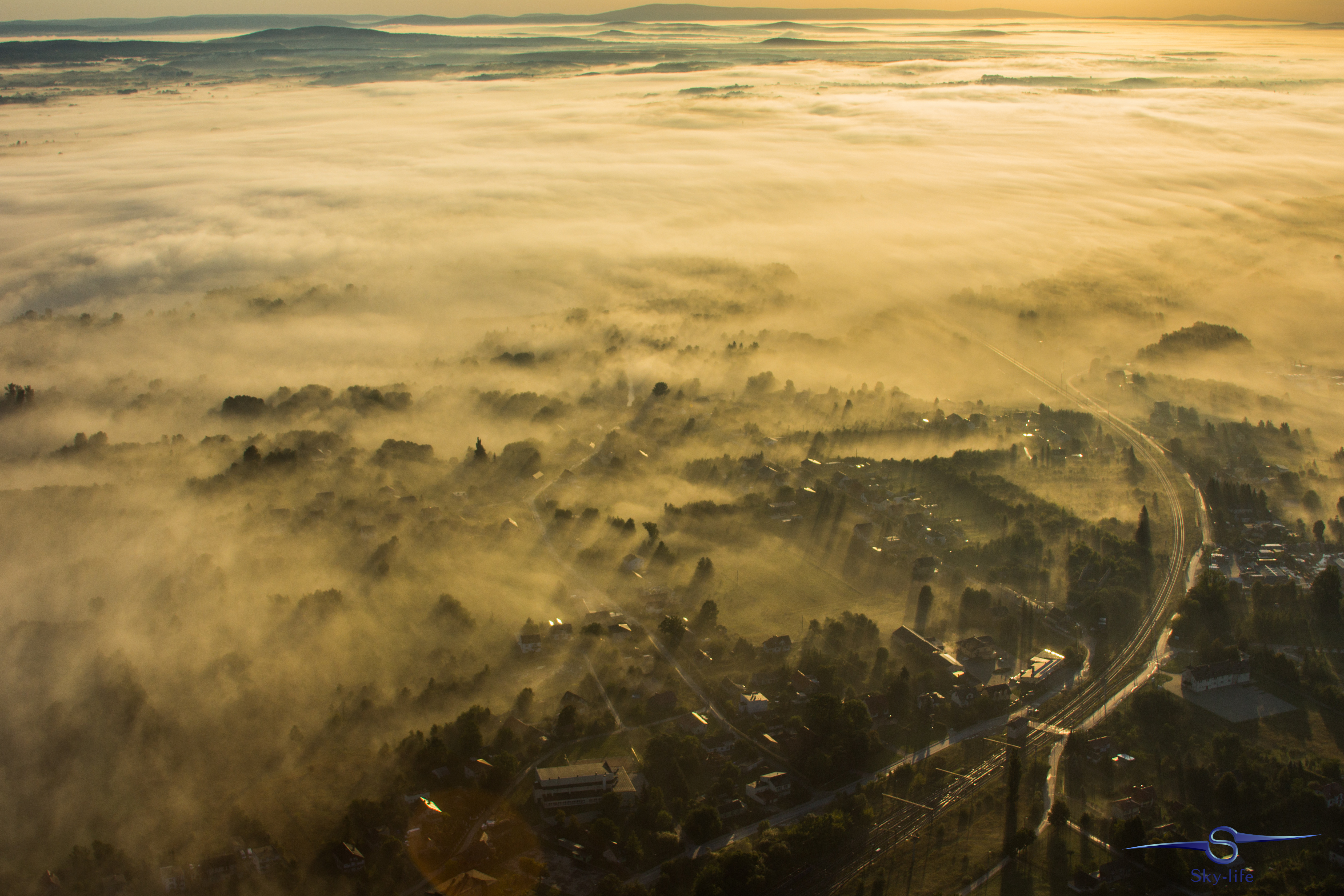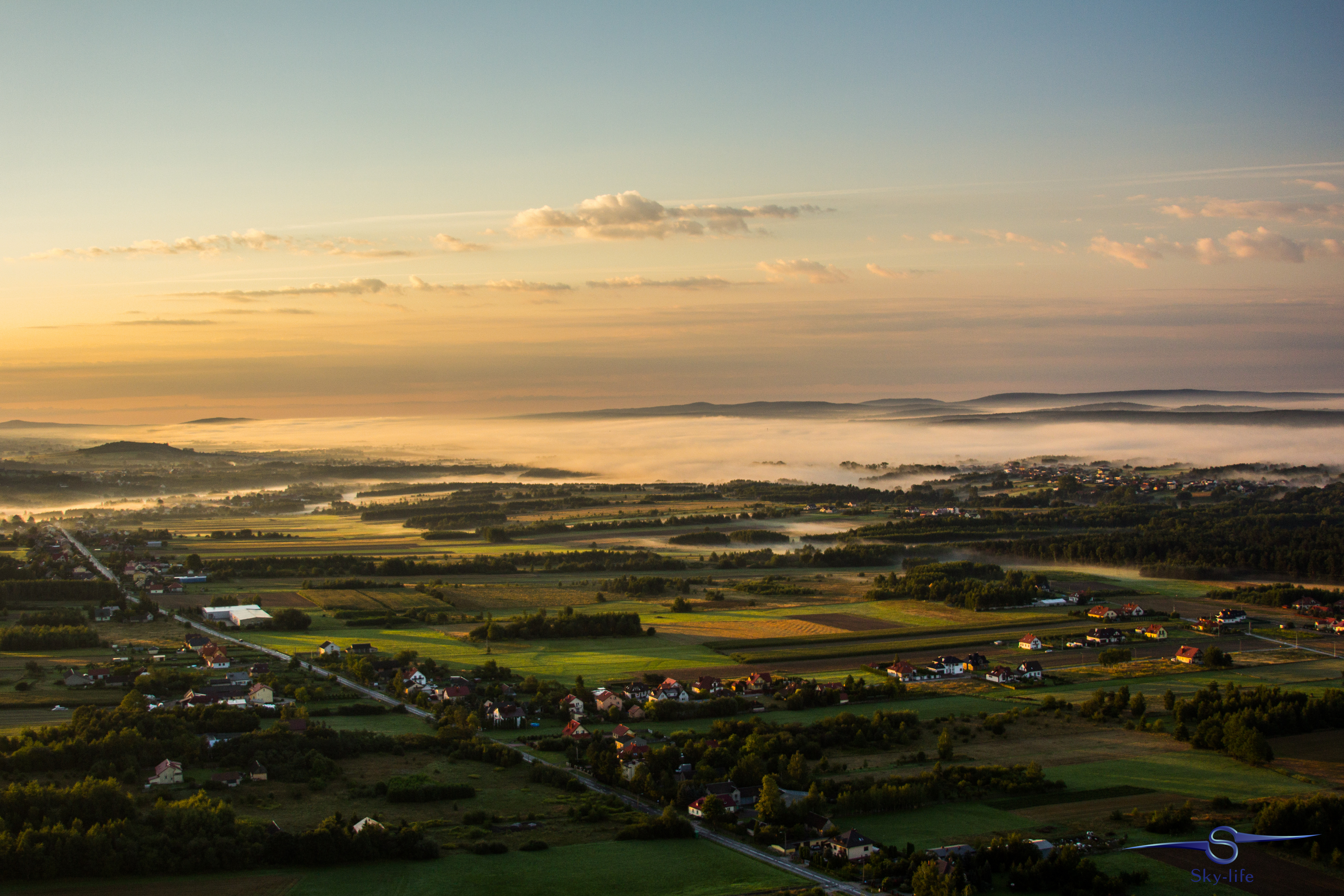 Standardowo pogoda pokazała swoje możliwości i postanowiła się załamać dokładnie na zaplanowany termin wylotu. Może by się udało po południu, ale decyzja już zapadła – lecę następnego dnia z samego rana. Jak myśli się o jakimś wyjeździe, to podróż na miejsce docelowe i z powrotem jest tylko przeszkodą i koniecznością. W przypadku lotnictwa – jest przyjemnością. I to nawet tak wielką, że czasami sam cel jest mało istotny – ważny jest przelot. W przypadku mojej wyprawy „połamałem” trasę wzbogacając ją o kilka elementów. Zaplanowałem 4 duże lotniska po trasie – Kielce, Pińczów, Kraków-Pobiednik i Nowy Targ. Na dwóch z nich nie będzie problemów z paliwem (Pińczów i Kraków), gdyż stacja benzynowa jest zaraz za płotem lotniska. Wariantów tras było bardzo dużo – w zależności od siły wiatru mogę lądować na każdym z nich lub na żadnym. Wszystko zweryfikuje pogoda nad ranem. Start mocno przed 5 rano, jeszcze według zasad VFR Noc. Pogoda marzenie! Całkowity brak wiatru, przepiękne poranne mgły, wstające słońce – widok jedyny w swoim rodzaju. Pierwszy docinek – do Kielc przez Góry Świętokrzyskie to tylko bajeczne widoki z porannymi mgłami. Całkowity brak wiatru i turbulencji – po prostu masełko, że aż można przysnąć. Na lotnisku w Kielcach podchodzimy tylko do low-pasa, bez lądowania i od razu obieramy kurs na Chęciny. Po drodze przepiękny widok Kielc budzących się z porannej mgły. Nad Chęcinami tylko jedno okrążenie i zmiana kursu na Pińczów. P drodze ponownie poranne mgły – tym razem od malowniczej Nidy. Pińczów na szczęście bez mgieł i można bezpiecznie lądować. W sumie tylko na odpoczynek, bo paliwa bez problemu wystarczy do Krakowa. Po starcie, mgieł już jest znacznie mniej, ale to prawdopodobnie przez krajobraz – teren robi się coraz bardziej pagórkowaty i coraz mniej liczne lasy ustępują miejsca polom uprawnym. Po około 45 minutach już witamy się na radiu z Pobiednikiem i ustalamy warunki lądowania – przed sekundą wystartował samolot ze spadochroniarzami, więc jak mamy lądować to teraz. Szybki, ciasny krąg i po 2 minutach już stoimy pod stacją benzynową. Tankujemy tak, żeby nam wystarczyło do samego końca trasy, ale i tak planuje jeszcze wylądować w Nowym Targu. Po starcie z Krakowa zaczyna się już „właściwa” trasa i konkretne już górki. Dziwne uczucie lecieć powyżej 4000ft i raz być 300m nad szczytem, by za chwilę być prawie 1000m nad doliną. Tutaj poranne mgły cały czas występują i szczelnie wypełniają prawie każdą dolinę. Na szczęście mgła już się podnosi i bez problemu można utrzymywać kontakt wzrokowy z ziemią. Po niespełna 45 min lotu docieramy do Nowego Targu. Na radiu dowiadujemy się, że możemy mieć problem z lądowaniem bo lotnisko jest przykryte mgłą. Ponieważ mam zapas paliwa na dalszą trasę postanawiam zrobić jeden krąg i zdecydować – jeżeli nie będzie widać lotniska to odlatuje dalej. Okazało się, że wcale nie jest tak źle i bez problemu mogliśmy wylądować. Przed nami ostatni odcinek trasy – na południe w kierunku Zakopanego, później omijamy strefę zakazu lotów nad polskimi Tatrami, przez Bukowinę Tatrzańską, Białą Spiską (SK) i prosto do celu – Nowa Wieś Spiska. Po wlocie w strefę lotniska wywołujemy: spiska prevádzka, sierra papa… :D