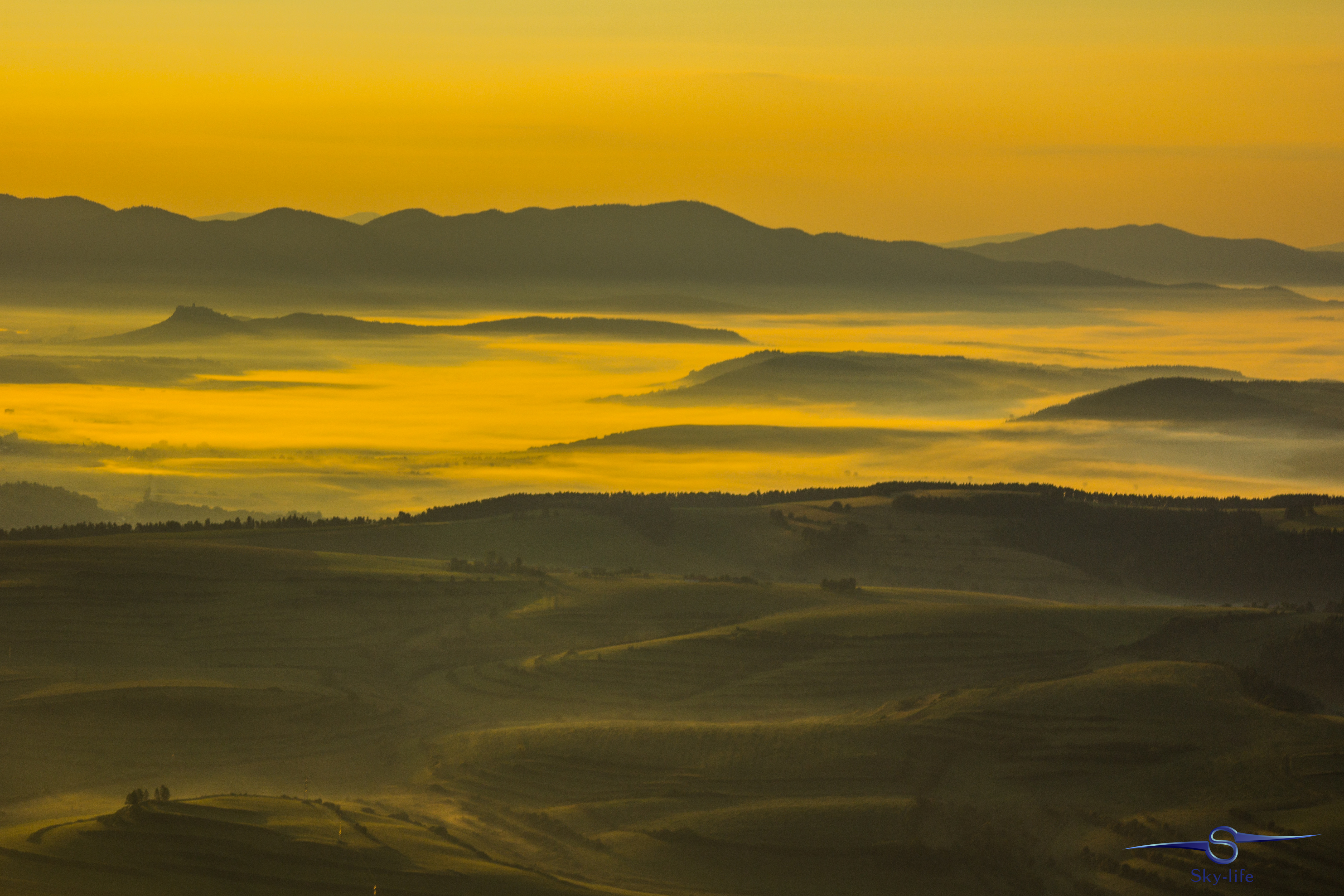 Jeszcze tego samego dnia ponownie wybraliśmy się na „oblot okolicy” tym razem już po rozpakowaniu motolotni z ekwipunku podróżnego i przede wszystkim – na dwie motolotnie z lokalnym pilotem. Chociaż sprzęty mieliśmy różnił się trochę od siebie, to była dla nas czysta przyjemność – latanie z kimś, kto zna okoliczny teren i pokazuje nam wszystko, jest niebagatelną pomocą. Nie chce tu opisywać każdego dnia, po kolei – wydaje mi się, że zdjęcia wyrażą więcej niż opis. Powiem tylko, że lataliśmy bardzo często rano i wieczorem. Lataliśmy zarówno w przestrzeni niekontrolowanej jak i w CTR i TMA Popradu. Lataliśmy zarówno po okolicznych zamkach jak i górach. Można śmiało powiedzieć, że oblataliśmy sporą część północnej Słowacji.