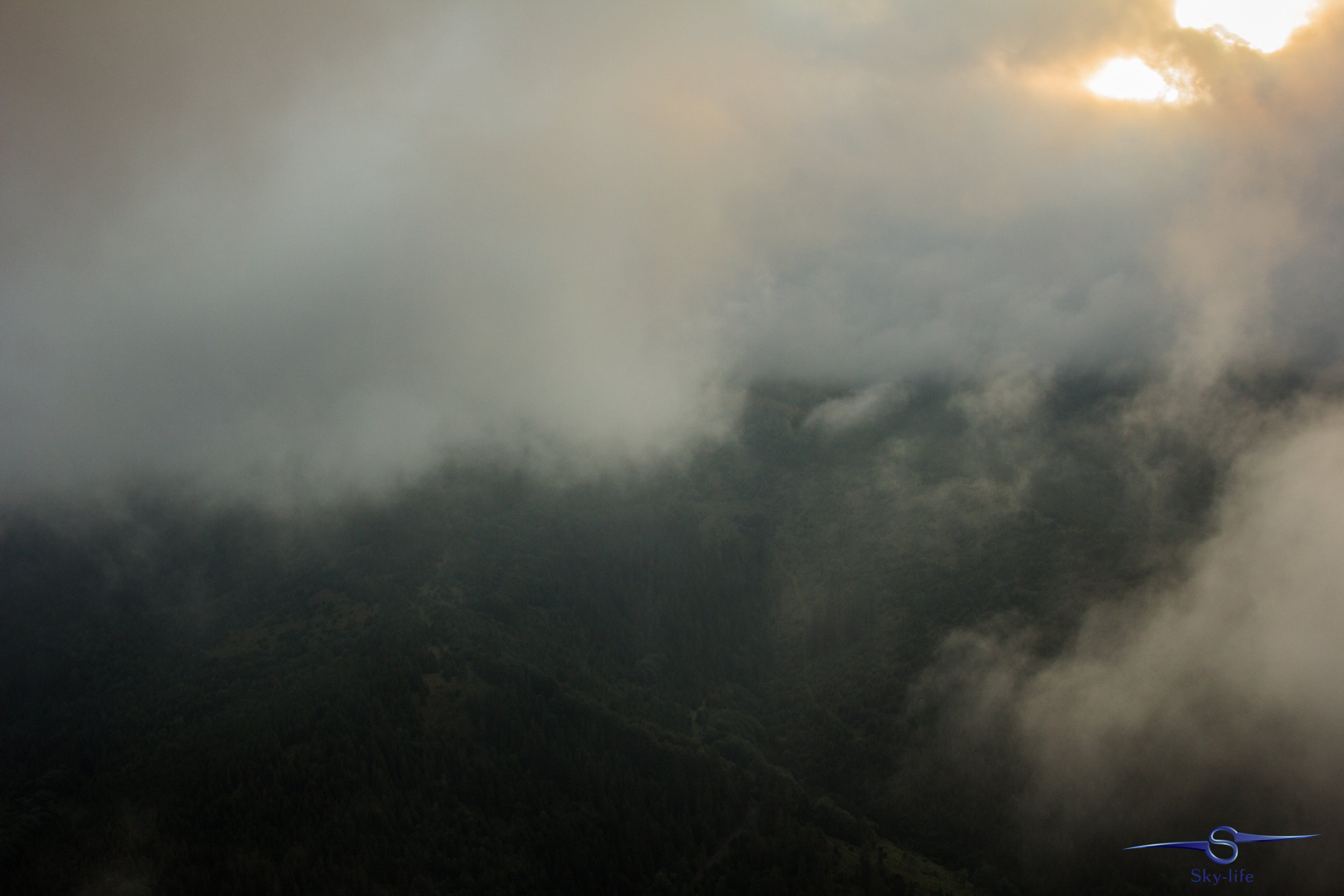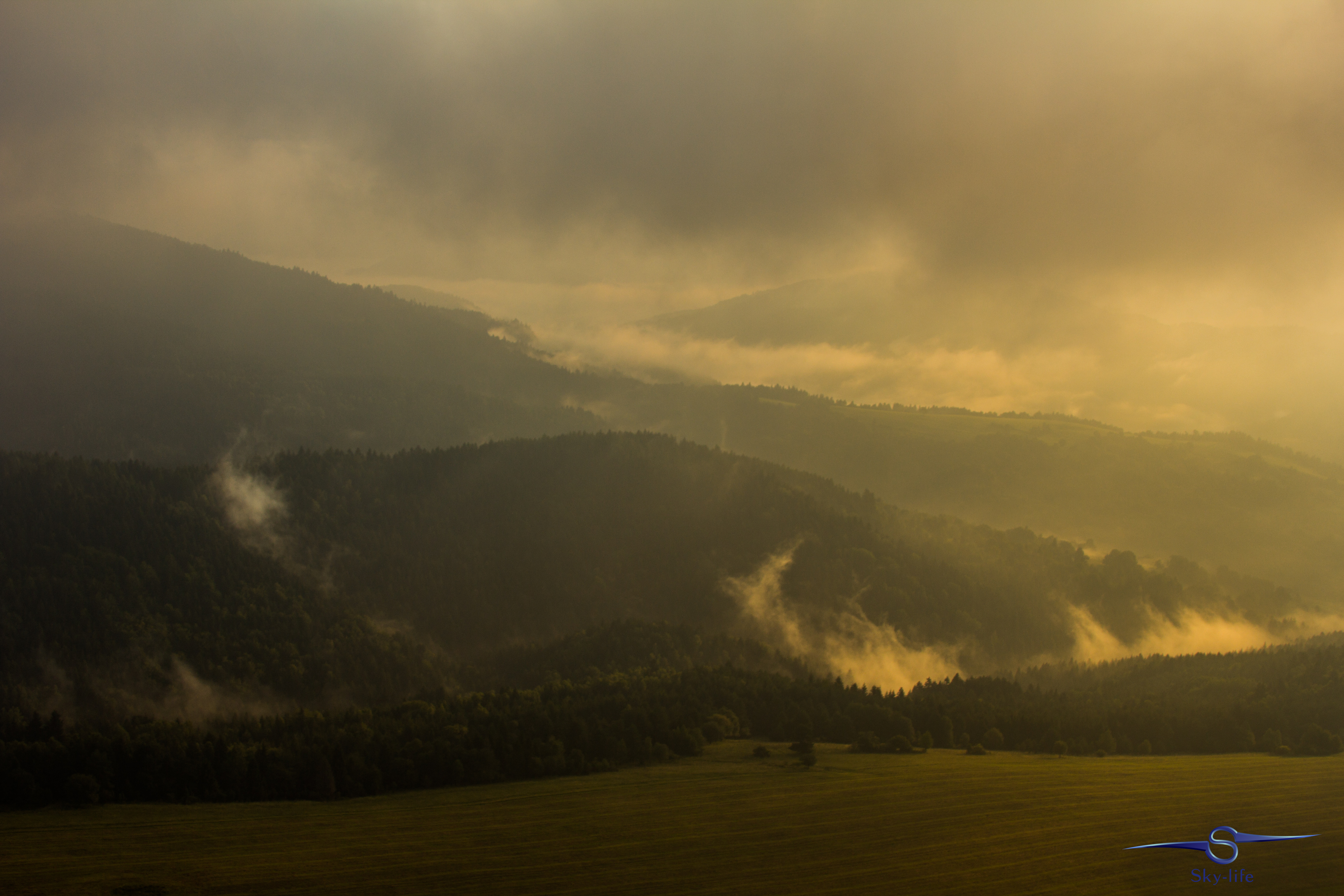 Z lataniem w górach wiążą się dwie bardzo ważne sprawy. Po pierwsze – pogoda. Każdy, kto chociaż raz był w górach, ten wie, że może ona zmienić się w ciągu 15 minut. Dlaczego górale tak trafnie przewidują pogodę? Bo co nie powiedzą, to się sprawdzi. Powiedzą, że będzie piękne słońce – będzie. Powiedzą, że będzie burza – też będzie. I to wszystko w ciągu 1 godziny. W związku z tym zaplanowanie długiego przelotu jest obarczone wielką ilością znaków zapytania, których lotnictwo nie lubi. Druga sprawa to wiatr, a raczej prądy powietrzne. Bardzo mocno generalizując: w przypadku kiedy wiatr wieje prostopadle do łańcuchów górskich, po stronie nawietrznej pojawiają się prądy wstępujące (wznoszące), a po stronie zawietrznej – zstępujące (duszące). O sile tych drugich miałem się przekonać dość szybko na własnej skórze.