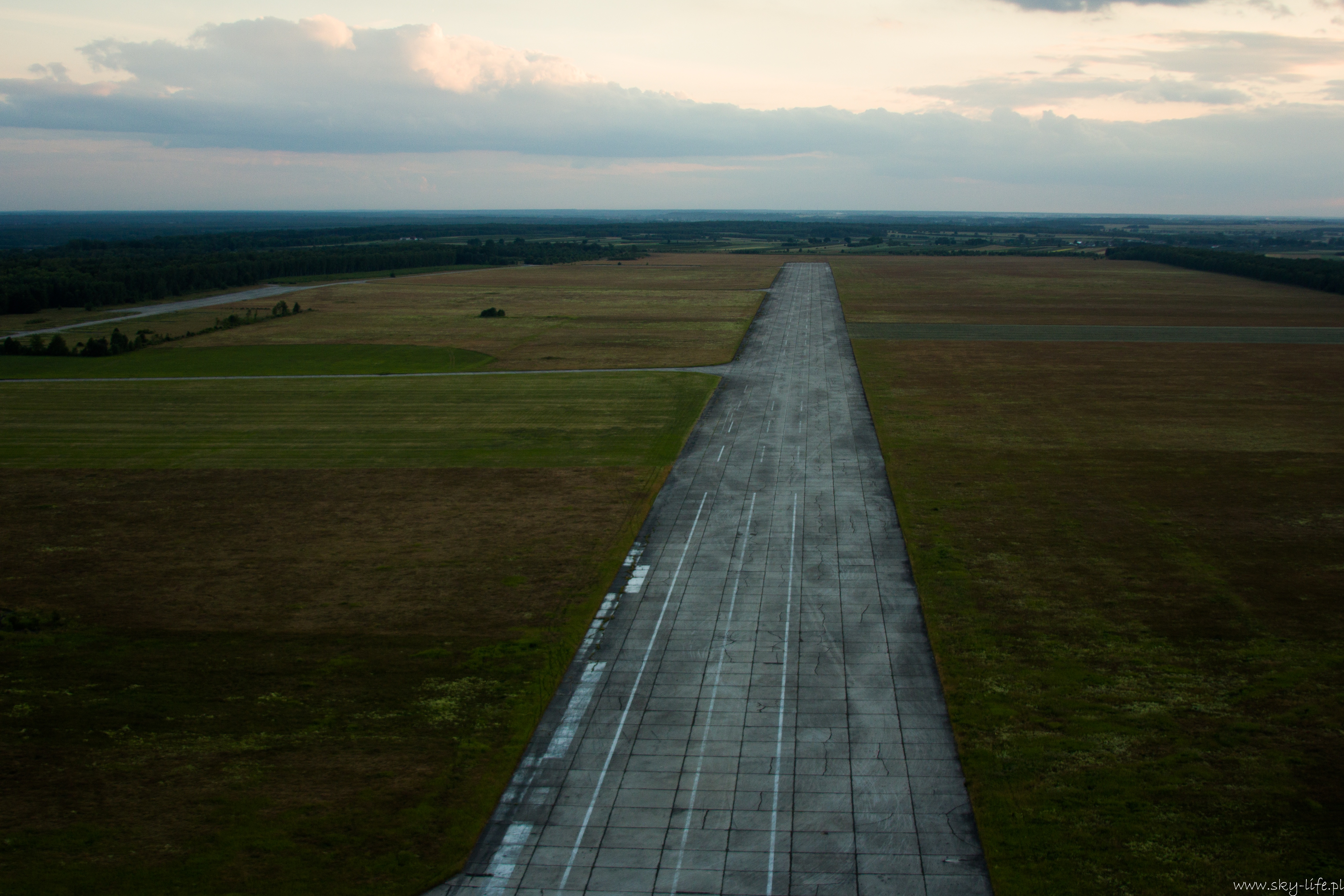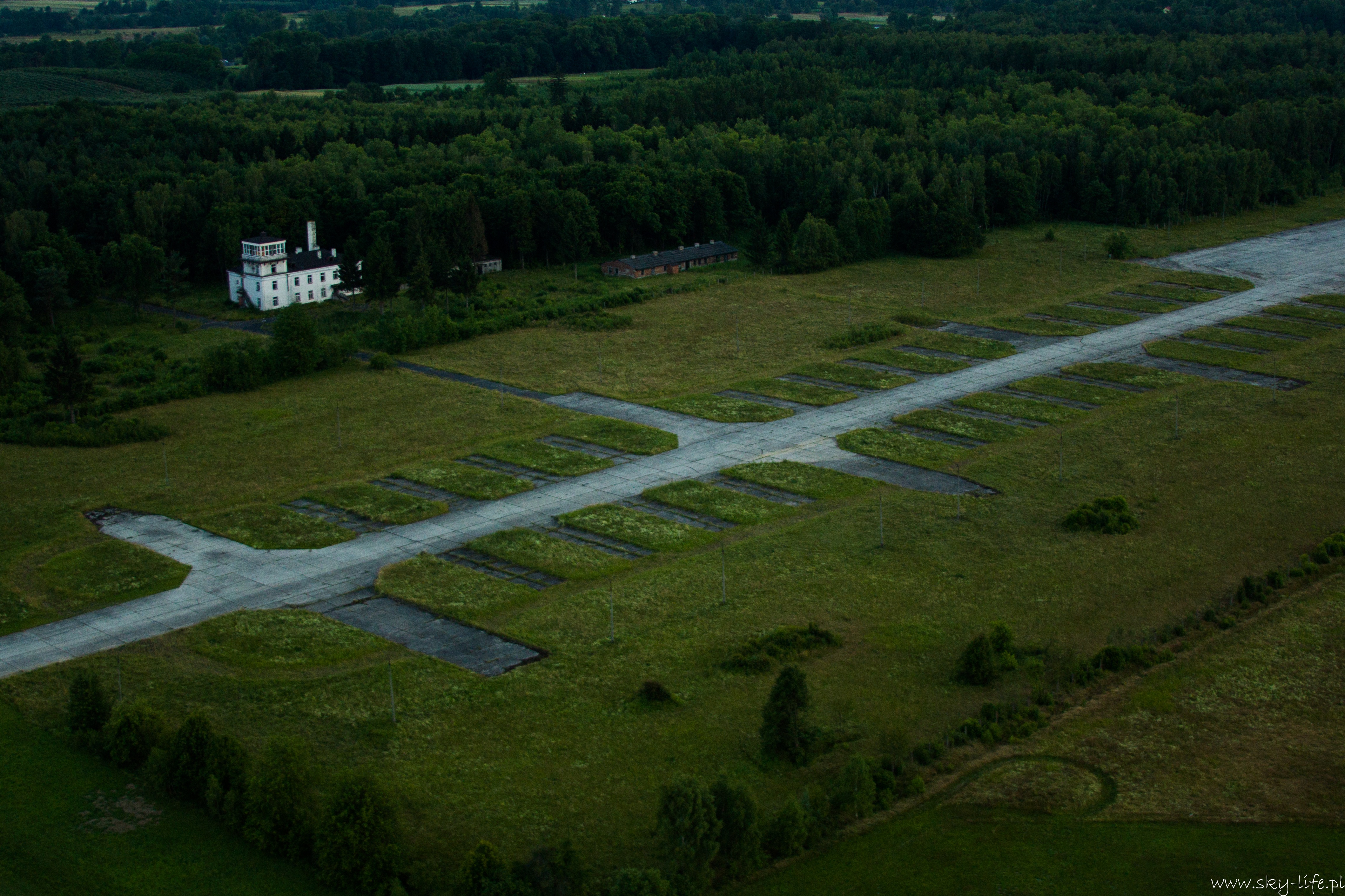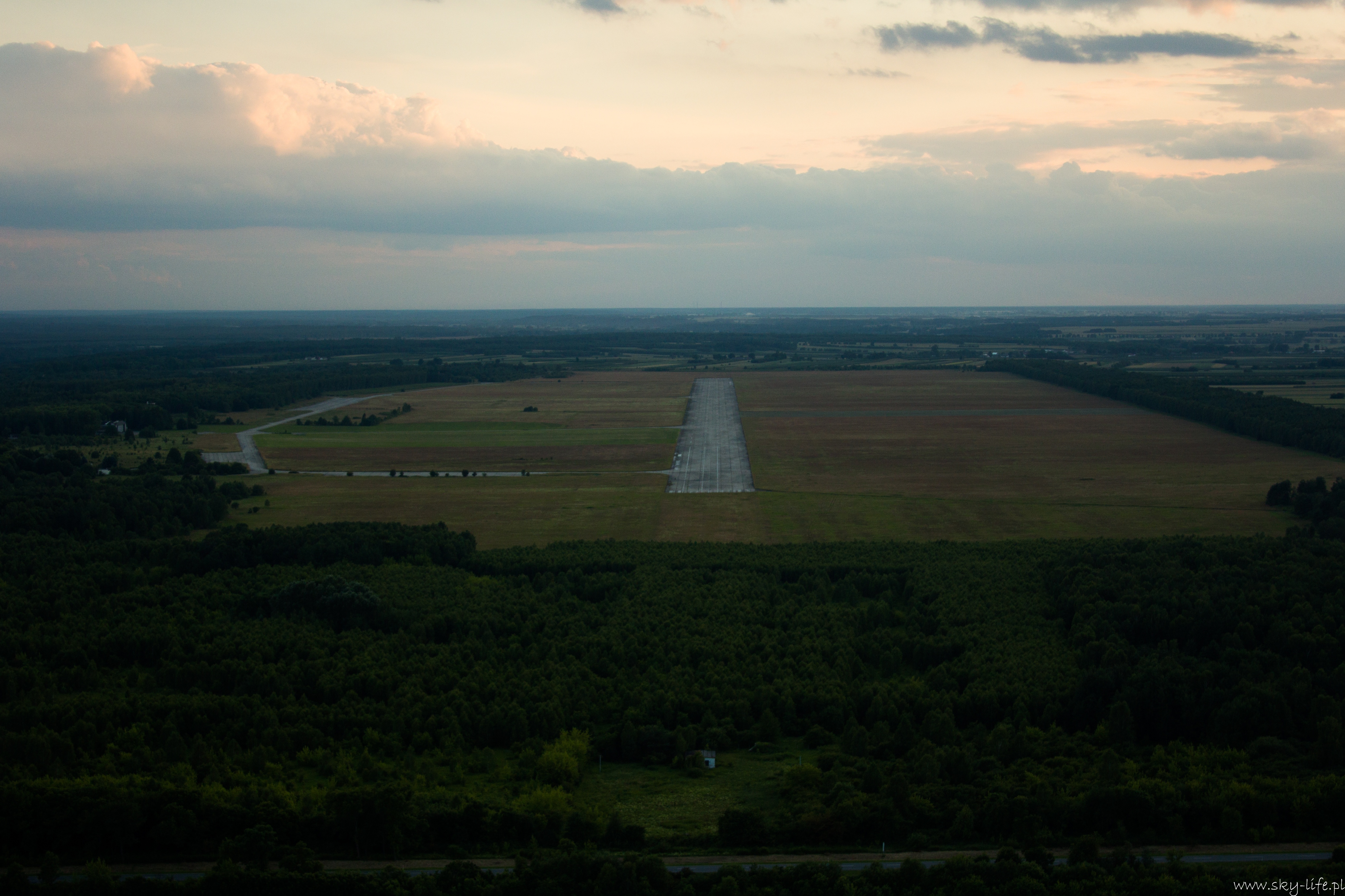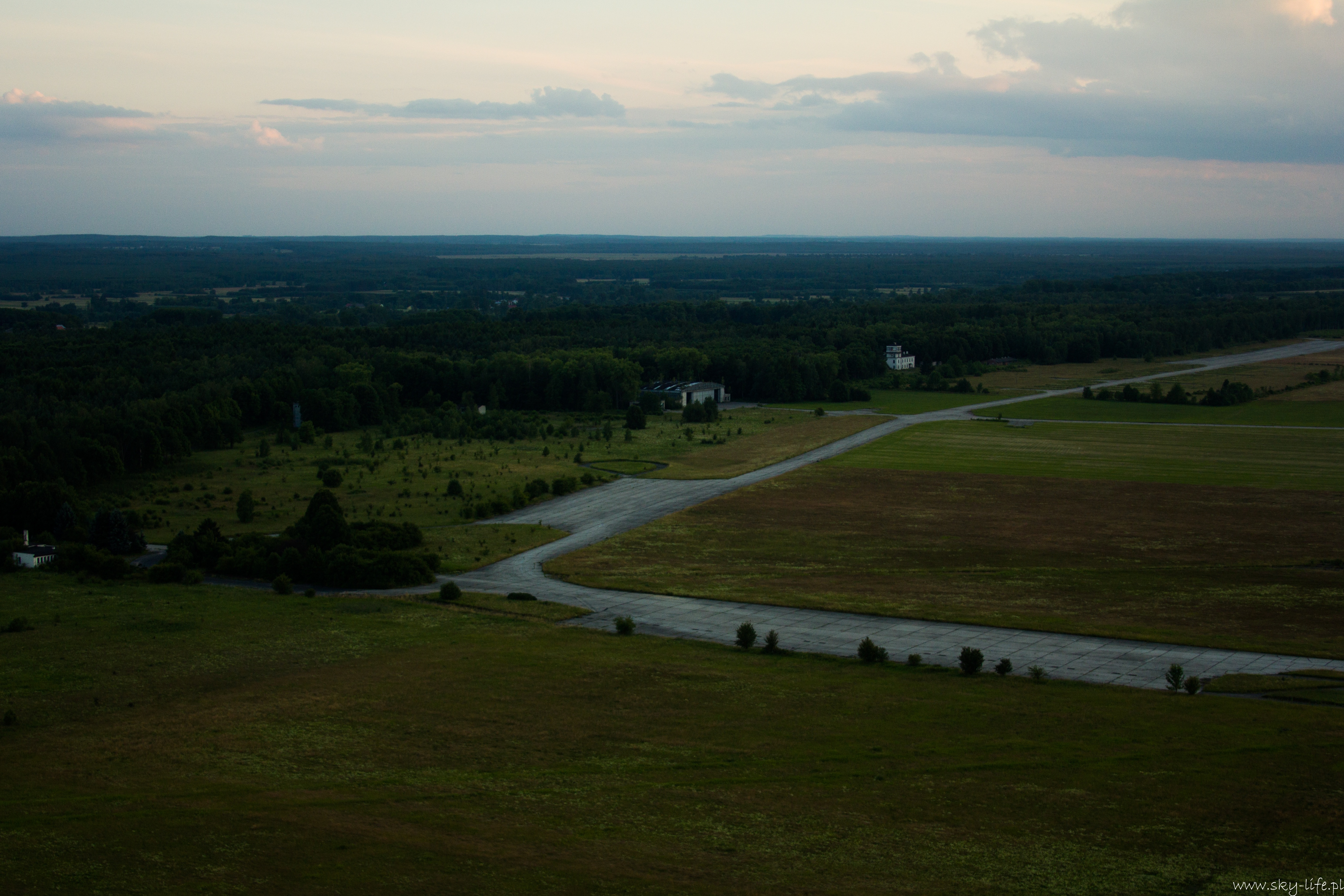 Po dotarciu nad Pilicę chwila zastanowienia – mam lecieć na wschód, czy zachód – mogłem zabrać ten GPS lub przynajmniej mapę! Szybka orientacja i już wiem gdzie jestem – do Nowego Miasta nad Pilicą mam jeszcze jakieś 4-5km na zachód. Po paru minutach już widać stare lotnisko wojskowe. Ehhh strasznie szkoda tego lotniska – pas betonowy o długości prawie 2,5km! – w Porcie Lotniczym Radom jest pas o prawie 500m krótszy… Infrastruktura około-lotniskowa (wieża, hangary) trochę już zniszczona, ale to dlatego, że nikt o nią nie dba… A możnaby było tak zrobić jak w Czechach – na starym wojskowym lotnisku Boží Dar niedaleko Milovic prężnie działa Aeroklub… No ale u Nas jak widać się nie da…