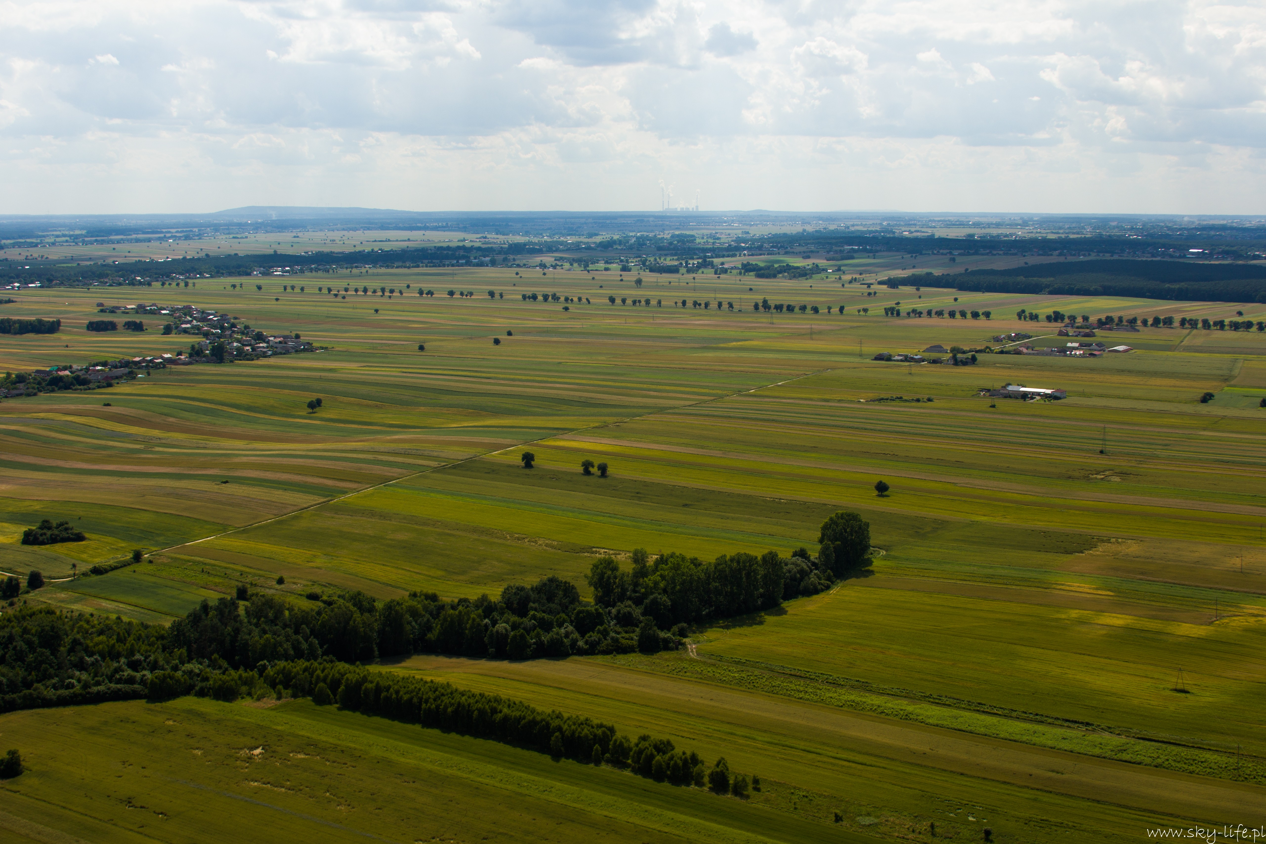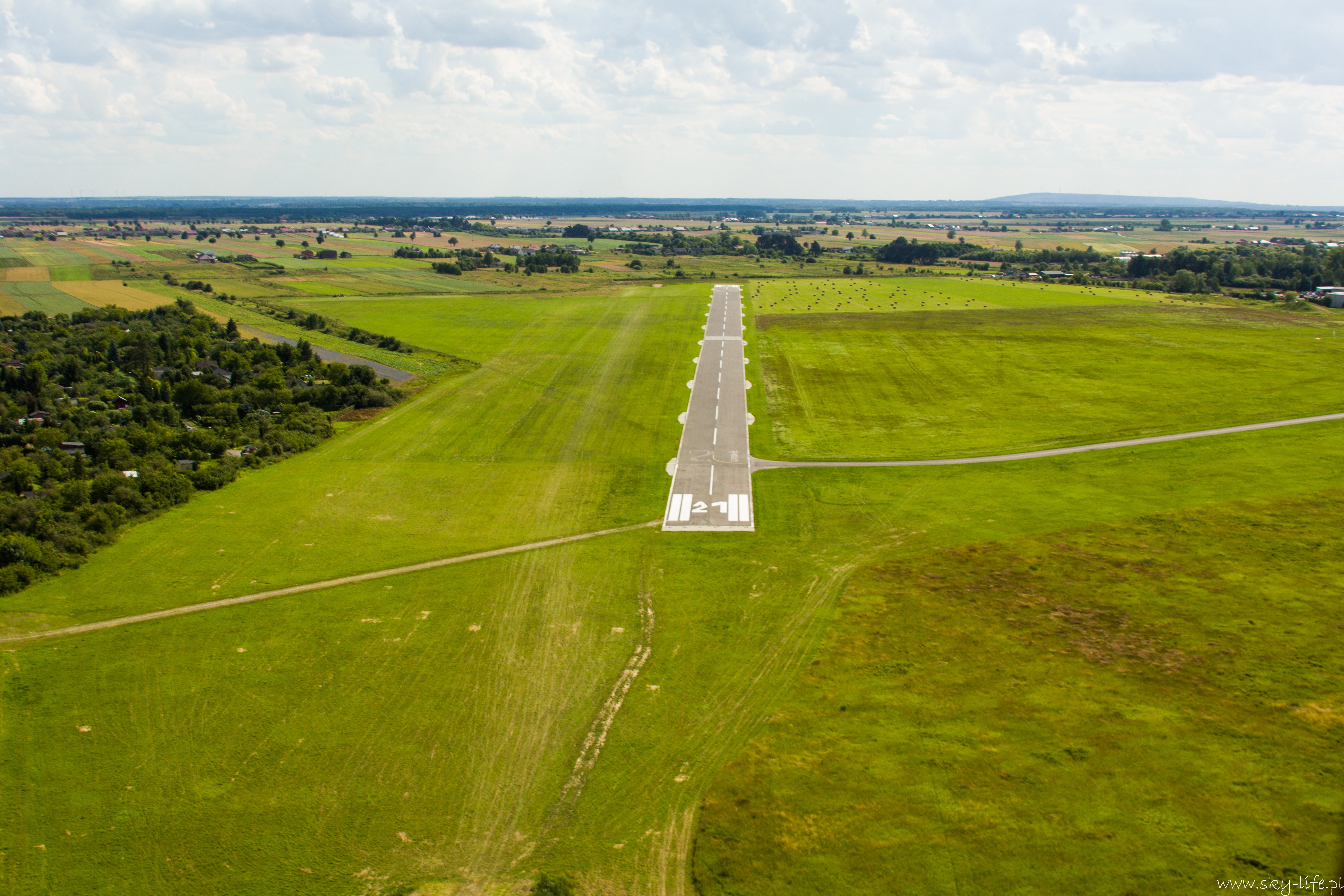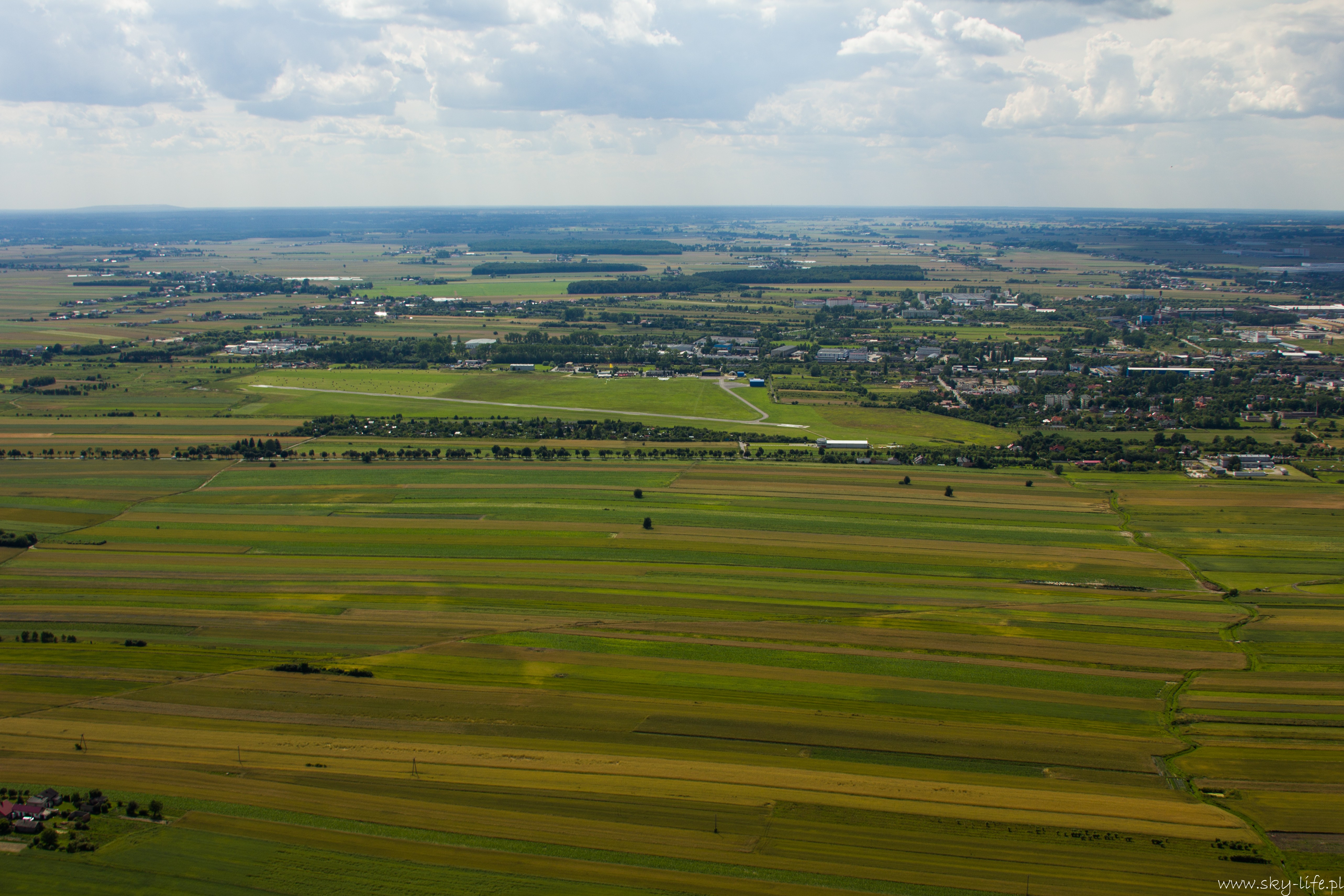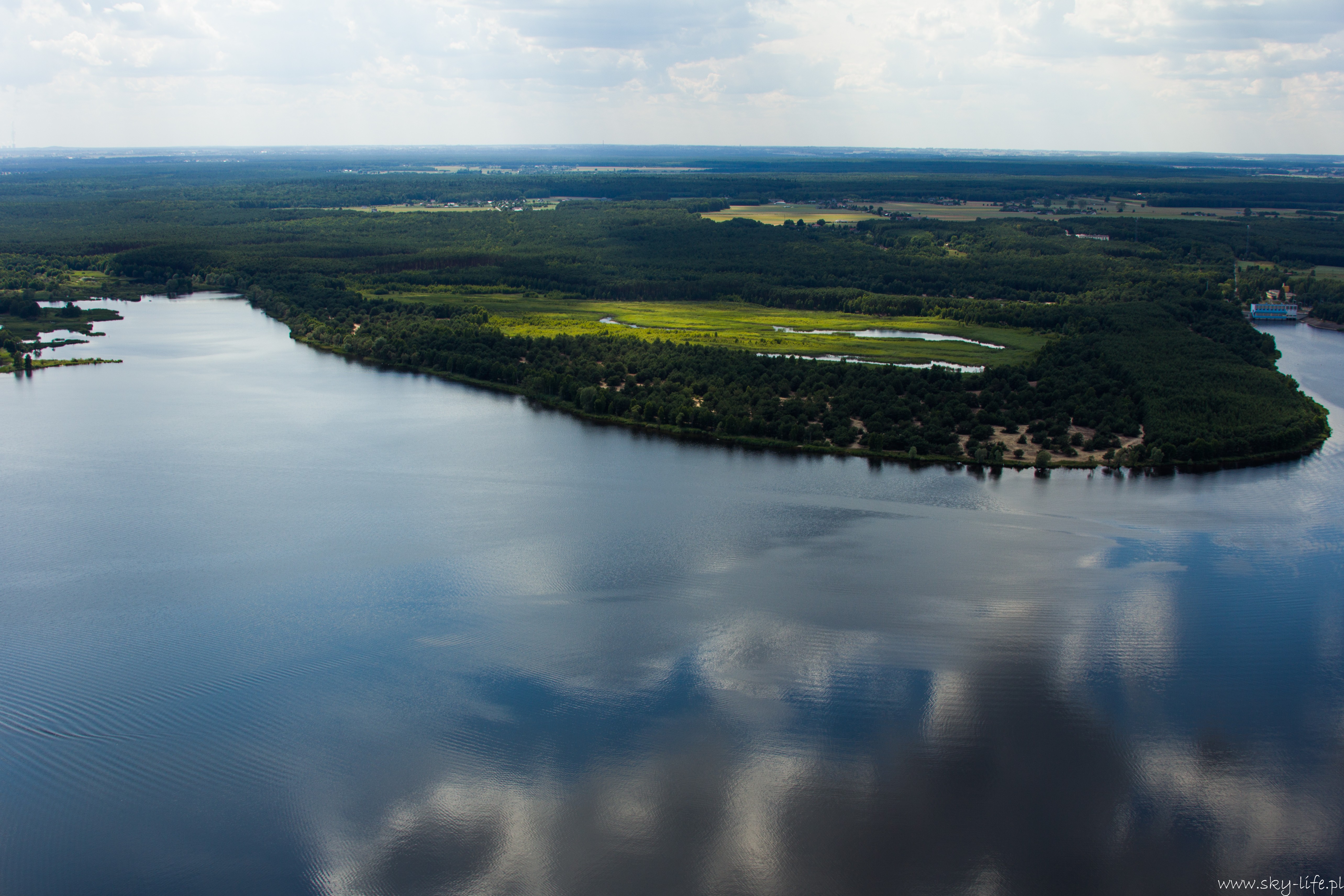 27.06.2014r – Na dzisiaj zapowiadali bardzo ładną pogodę, więc przygotowania zacząłem już poprzedniego dnia. Spośród bogactwa pomysłów na trasę wybrałem jeden – lot do Piotrkowa Trybunalskiego z zahaczeniem o Zalew w Sulejowie. Na lotnisku byłem w samo południe – przygotowanie do lotu, weryfikacja sytuacji meteo i naniesienie poprawki na wiatr – lot w obie strony będzie trwał 3h, więc postanowiłem zabrać ze sobą kanister z dodatkowym paliwem, bo pełne zbiorniki też mi wystarczą na 3h, więc zabrakłoby rezerwy. O 14-stej byłem już w górze. Pogoda taka jak się spodziewałem, bardzo duże nasłonecznienie po ostatnich deszczach a także bogato rozwinięte CU zapowiadały dość mocną termikę. Okazała się nie taka straszna, fakt były miejsca dość mocnej turbulencji, ale przeważnie na wysokości powyżej 400m. Trasę ustaliłem prawie samymi polami, więc leciałem przez cały czas na 300m. Po około 1h lotu byłem już nad Zalewem. Tutaj rundka wzdłuż wschodniego brzegu i dalej do Piotrkowa. Na radiu cisza, więc zrobiłem przepisowy krąg nad lotniskowy i usiadłem na betonowym pasie. No własnie betonowy pas i drogi kołowania, ach jak przyjemnie ;)