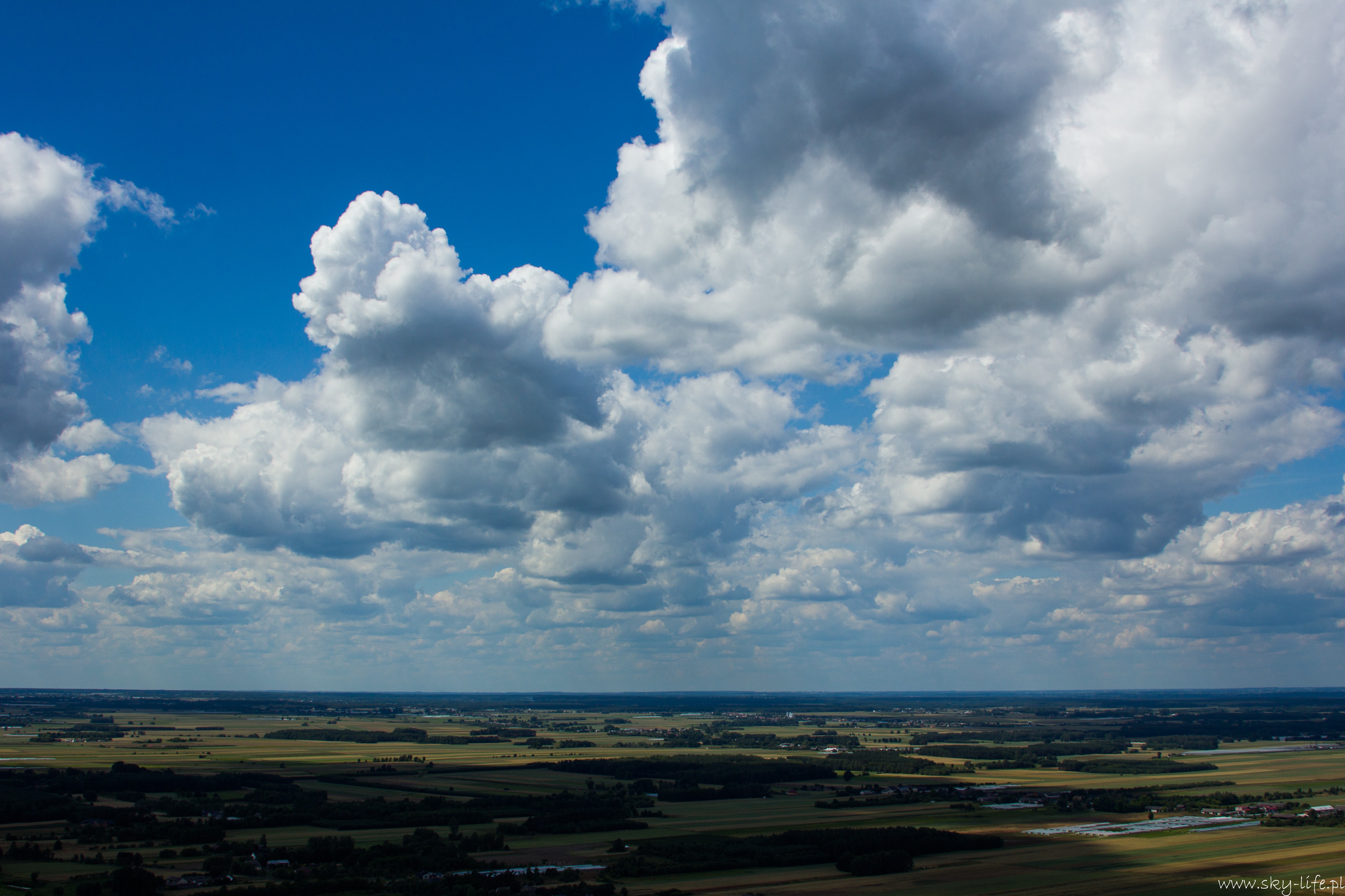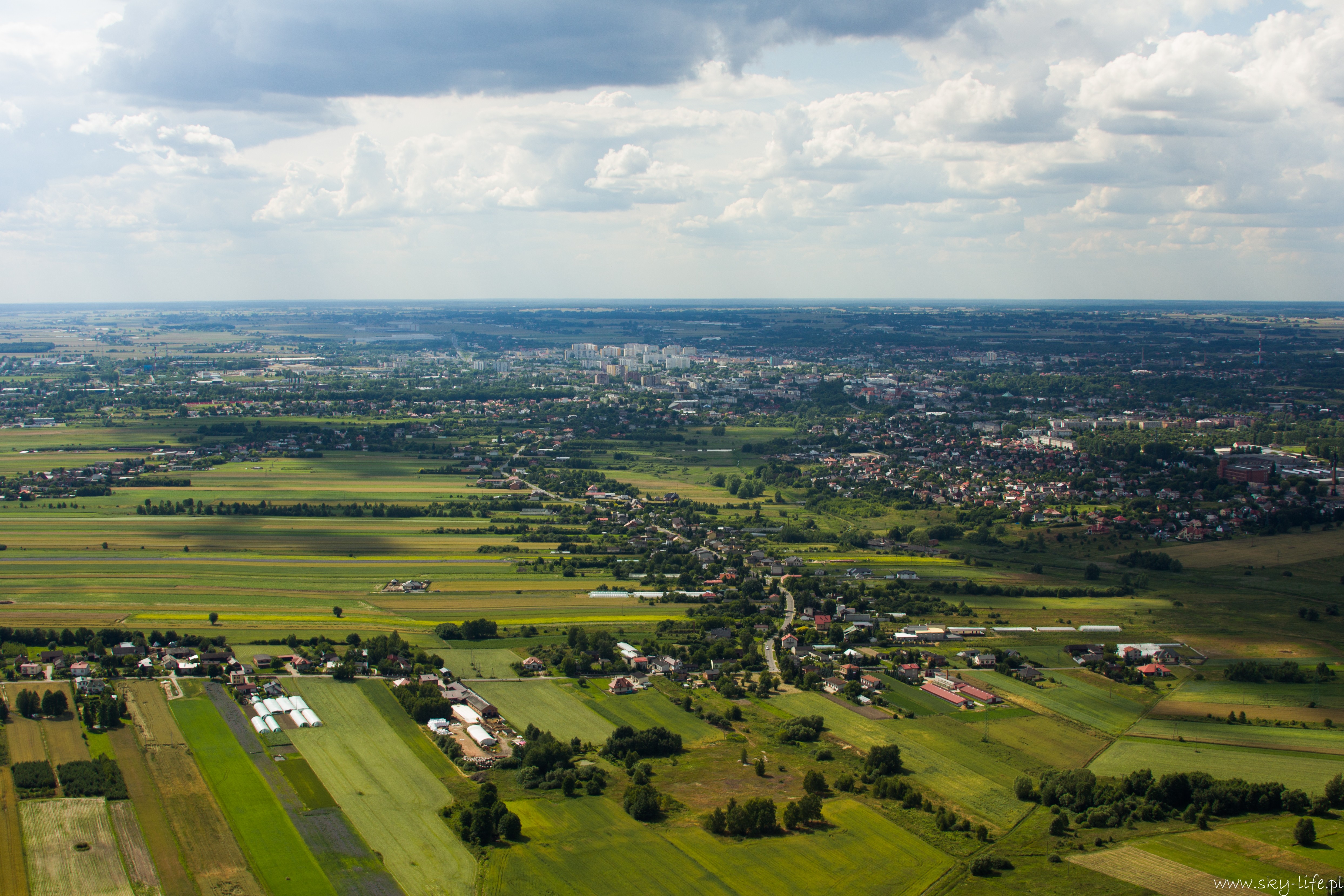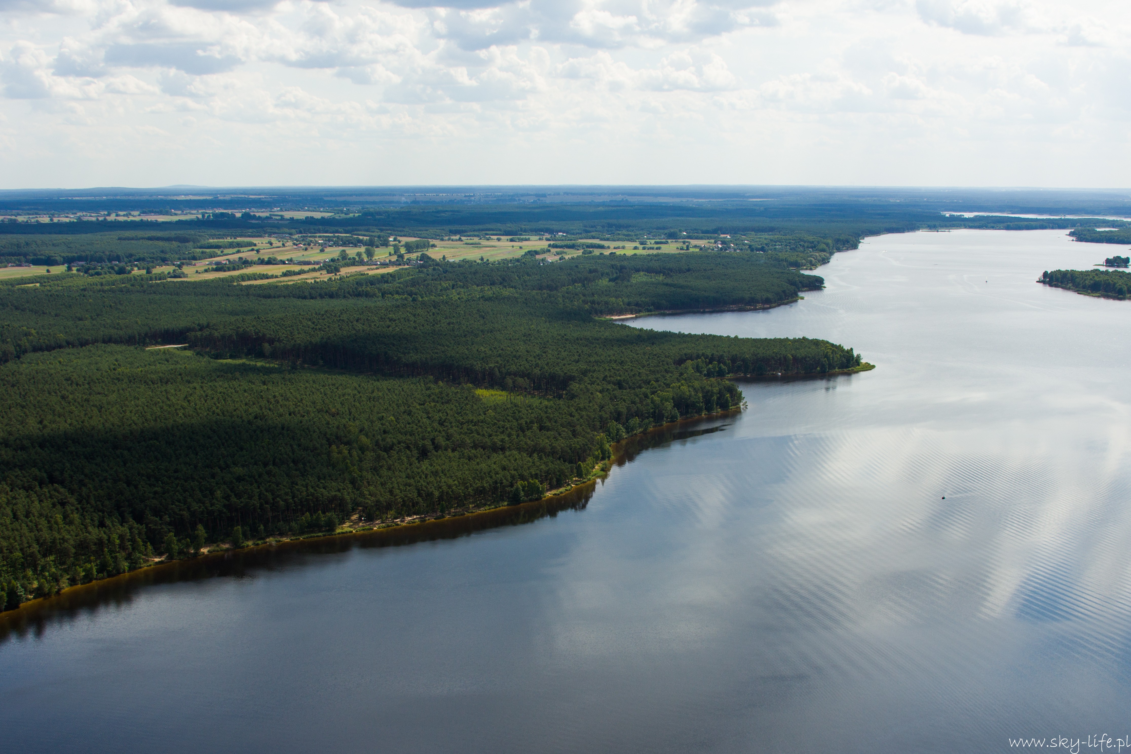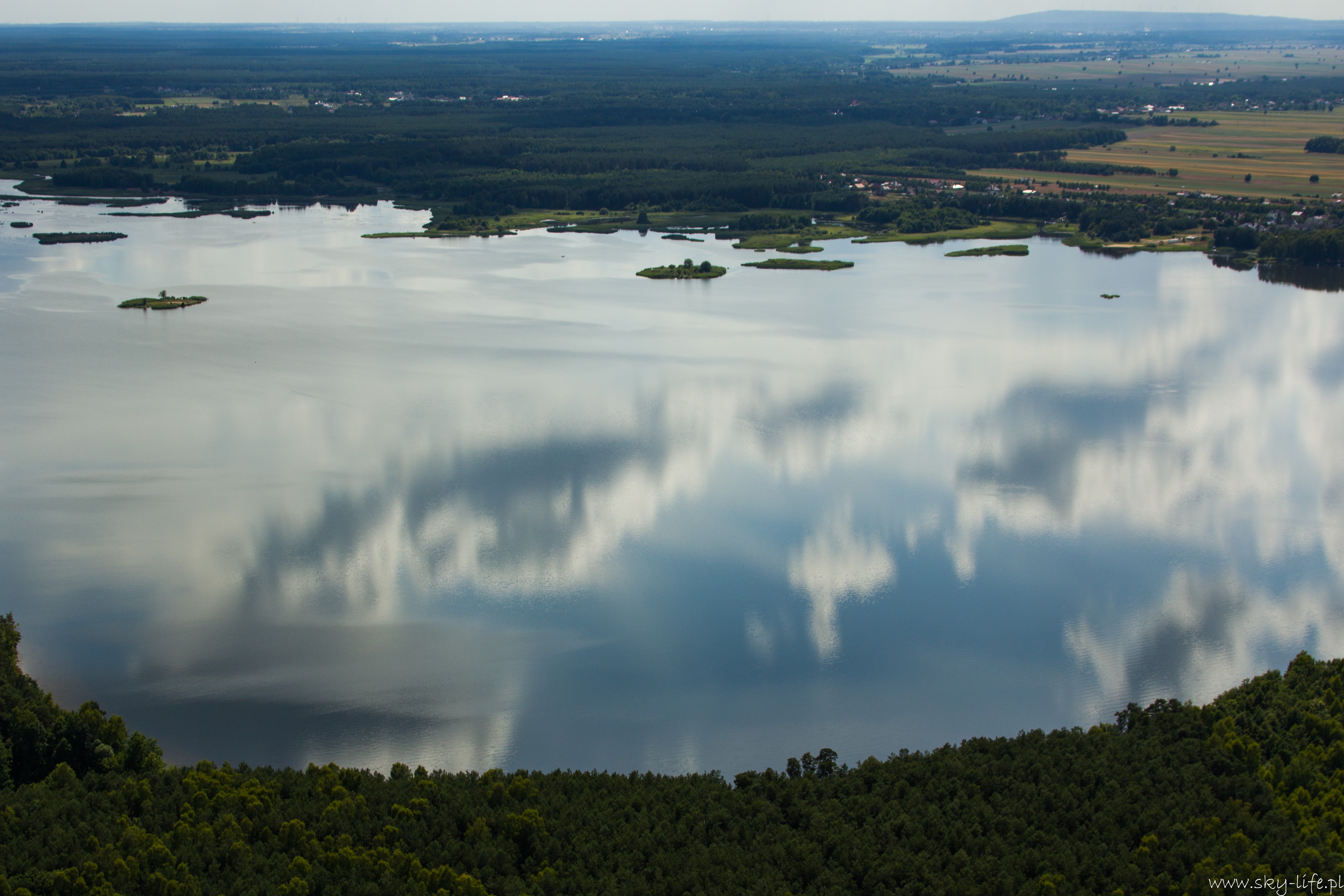 27.06.2014r – Na dzisiaj zapowiadali bardzo ładną pogodę, więc przygotowania zacząłem już poprzedniego dnia. Spośród bogactwa pomysłów na trasę wybrałem jeden – lot do Piotrkowa Trybunalskiego z zahaczeniem o Zalew w Sulejowie. Na lotnisku byłem w samo południe – przygotowanie do lotu, weryfikacja sytuacji meteo i naniesienie poprawki na wiatr – lot w obie strony będzie trwał 3h, więc postanowiłem zabrać ze sobą kanister z dodatkowym paliwem, bo pełne zbiorniki też mi wystarczą na 3h, więc zabrakłoby rezerwy. O 14-stej byłem już w górze. Pogoda taka jak się spodziewałem, bardzo duże nasłonecznienie po ostatnich deszczach a także bogato rozwinięte CU zapowiadały dość mocną termikę. Okazała się nie taka straszna, fakt były miejsca dość mocnej turbulencji, ale przeważnie na wysokości powyżej 400m. Trasę ustaliłem prawie samymi polami, więc leciałem przez cały czas na 300m. Po około 1h lotu byłem już nad Zalewem. Tutaj rundka wzdłuż wschodniego brzegu i dalej do Piotrkowa. Na radiu cisza, więc zrobiłem przepisowy krąg nad lotniskowy i usiadłem na betonowym pasie. No własnie betonowy pas i drogi kołowania, ach jak przyjemnie ;)