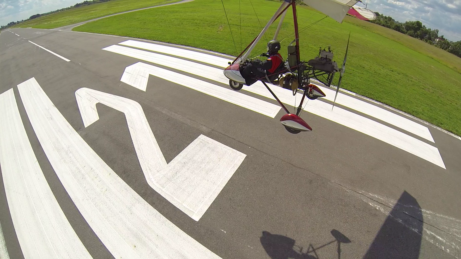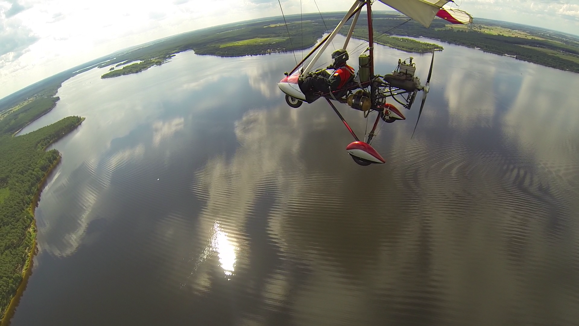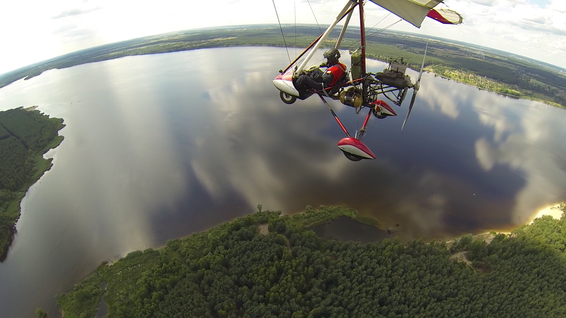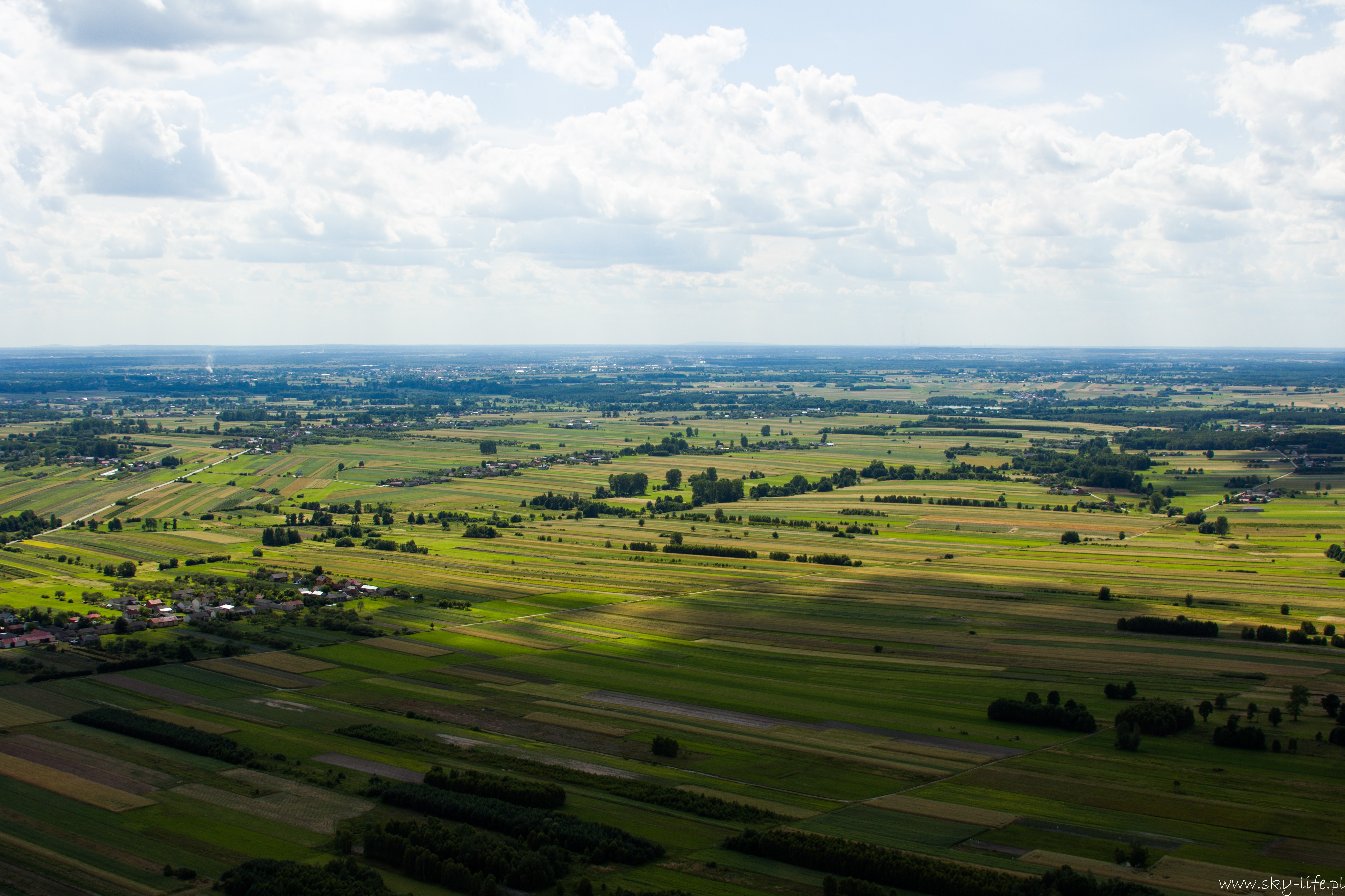 27.06.2014r – Na dzisiaj zapowiadali bardzo ładną pogodę, więc przygotowania zacząłem już poprzedniego dnia. Spośród bogactwa pomysłów na trasę wybrałem jeden – lot do Piotrkowa Trybunalskiego z zahaczeniem o Zalew w Sulejowie. Na lotnisku byłem w samo południe – przygotowanie do lotu, weryfikacja sytuacji meteo i naniesienie poprawki na wiatr – lot w obie strony będzie trwał 3h, więc postanowiłem zabrać ze sobą kanister z dodatkowym paliwem, bo pełne zbiorniki też mi wystarczą na 3h, więc zabrakłoby rezerwy. O 14-stej byłem już w górze. Pogoda taka jak się spodziewałem, bardzo duże nasłonecznienie po ostatnich deszczach a także bogato rozwinięte CU zapowiadały dość mocną termikę. Okazała się nie taka straszna, fakt były miejsca dość mocnej turbulencji, ale przeważnie na wysokości powyżej 400m. Trasę ustaliłem prawie samymi polami, więc leciałem przez cały czas na 300m. Po około 1h lotu byłem już nad Zalewem. Tutaj rundka wzdłuż wschodniego brzegu i dalej do Piotrkowa. Na radiu cisza, więc zrobiłem przepisowy krąg nad lotniskowy i usiadłem na betonowym pasie. No własnie betonowy pas i drogi kołowania, ach jak przyjemnie ;)