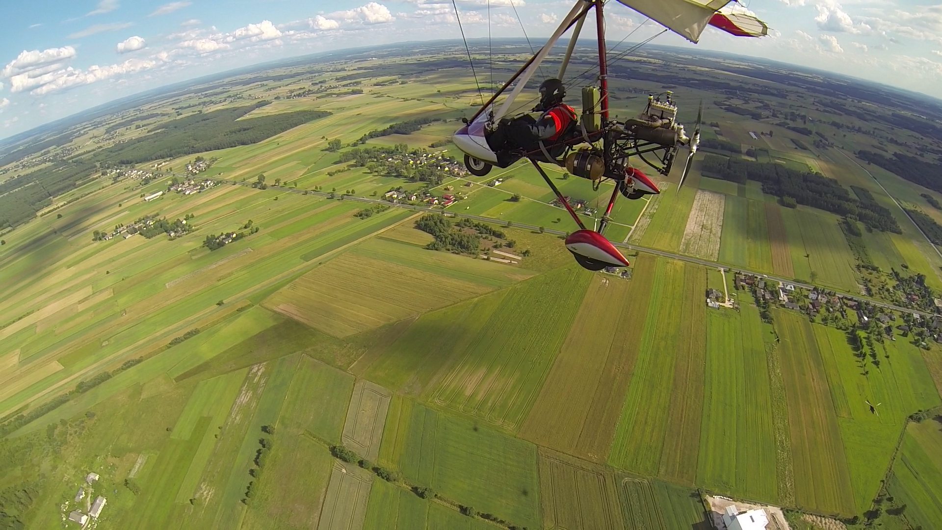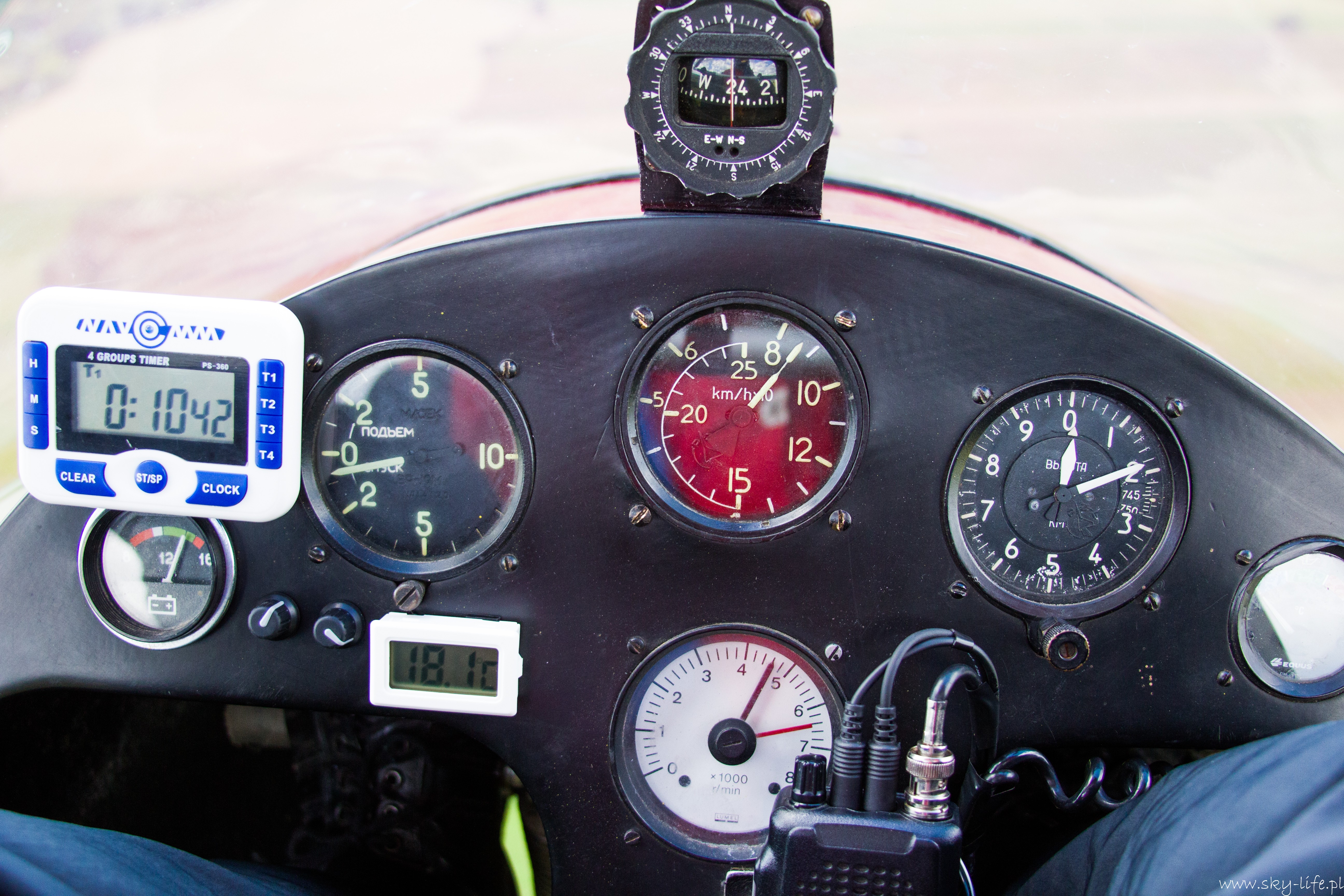 Na lotnisku godzinka rozmowy z miejscowymi i trzeba wracać, bo o 18-stej umówiłem się na lotnisku. W drodze powrotnej, w okolicy Opoczna spotkałem 2x po dwa wojskowe śmigłowce. Na szczęście przeszli dużo poniżej mnie – nawet nie chcę sobie wyobrażać, co pęd powietrza od ich wirników spowodowałby gdyby przeszli nade mną, a nie nie pod. Pozostała część lotu to już przyjemność – co prawda chmurki już się rozeszły, aczkolwiek termika jeszcze trzymała.