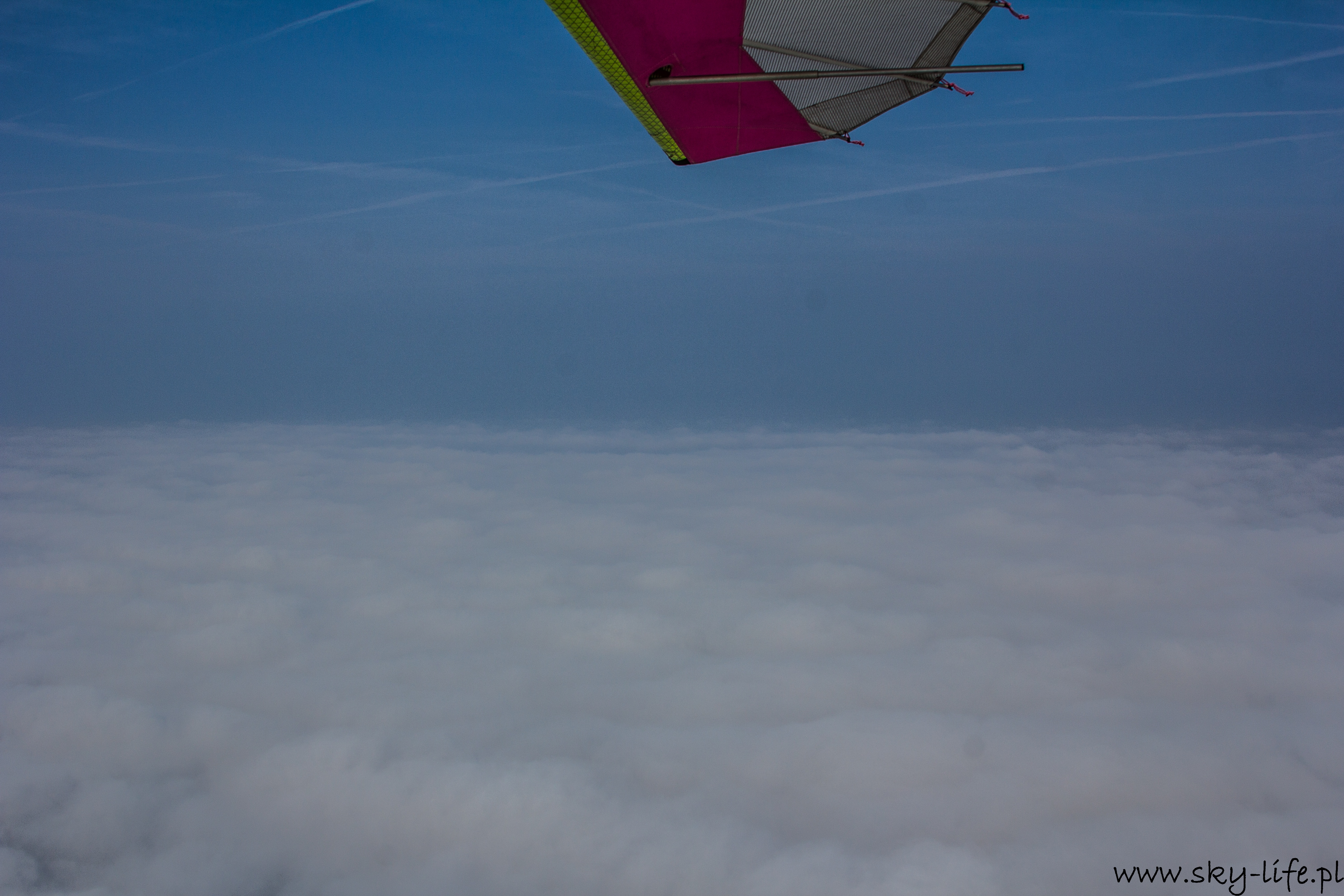 eby można było bezpiecznie polecieć. Czas ten jak zwykle poświęciłem na weryfikację i przegląd sprzętu. Około godziny 11-stej mgła na tyle się już rozwiała, że można startować omijając tuman mgły, aby zachować widoczność ziemi – utrzymywała się ona niezwykle nisko – pomiędzy 100 a 180m AGL, kontynuowałem wznoszenie na ponad