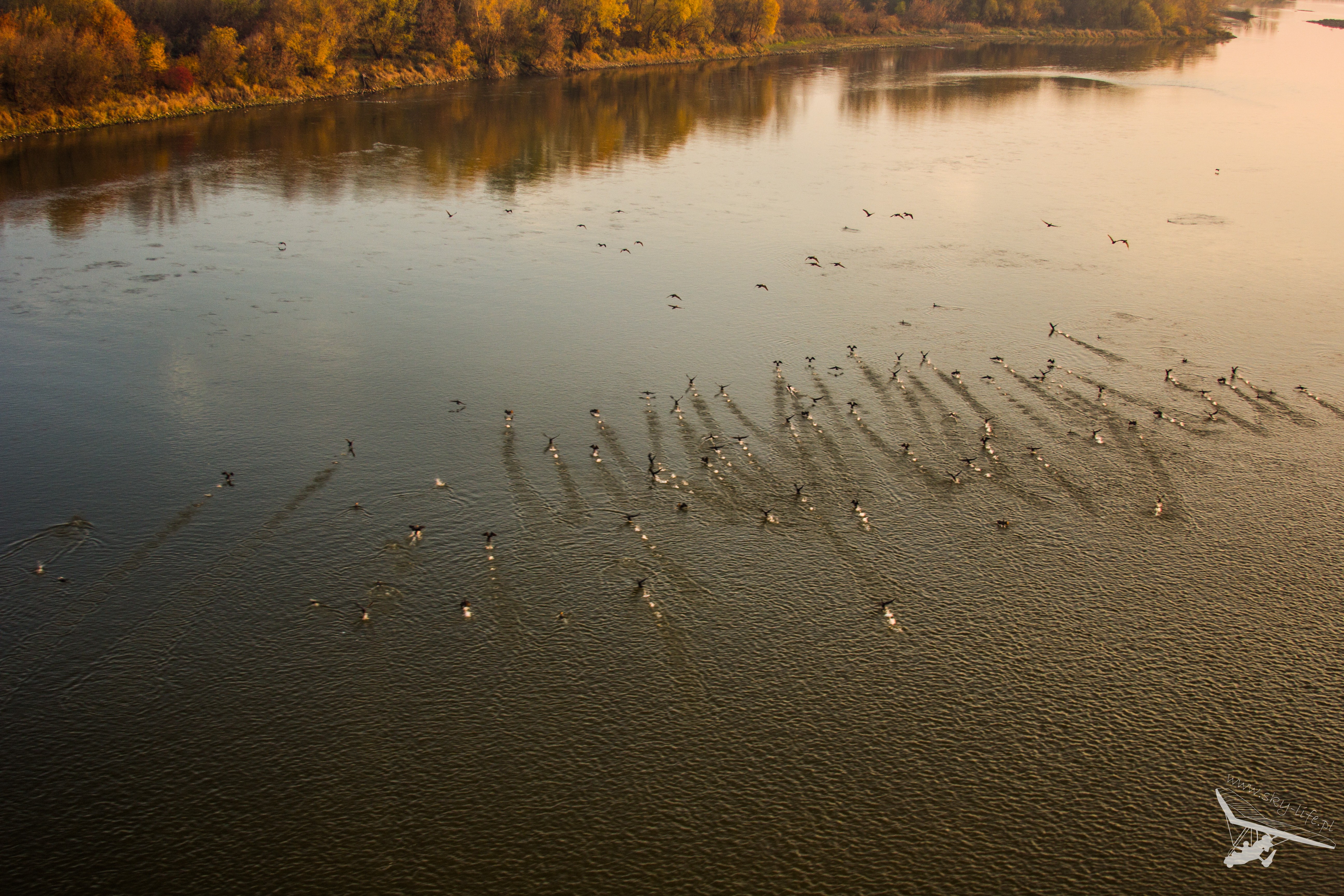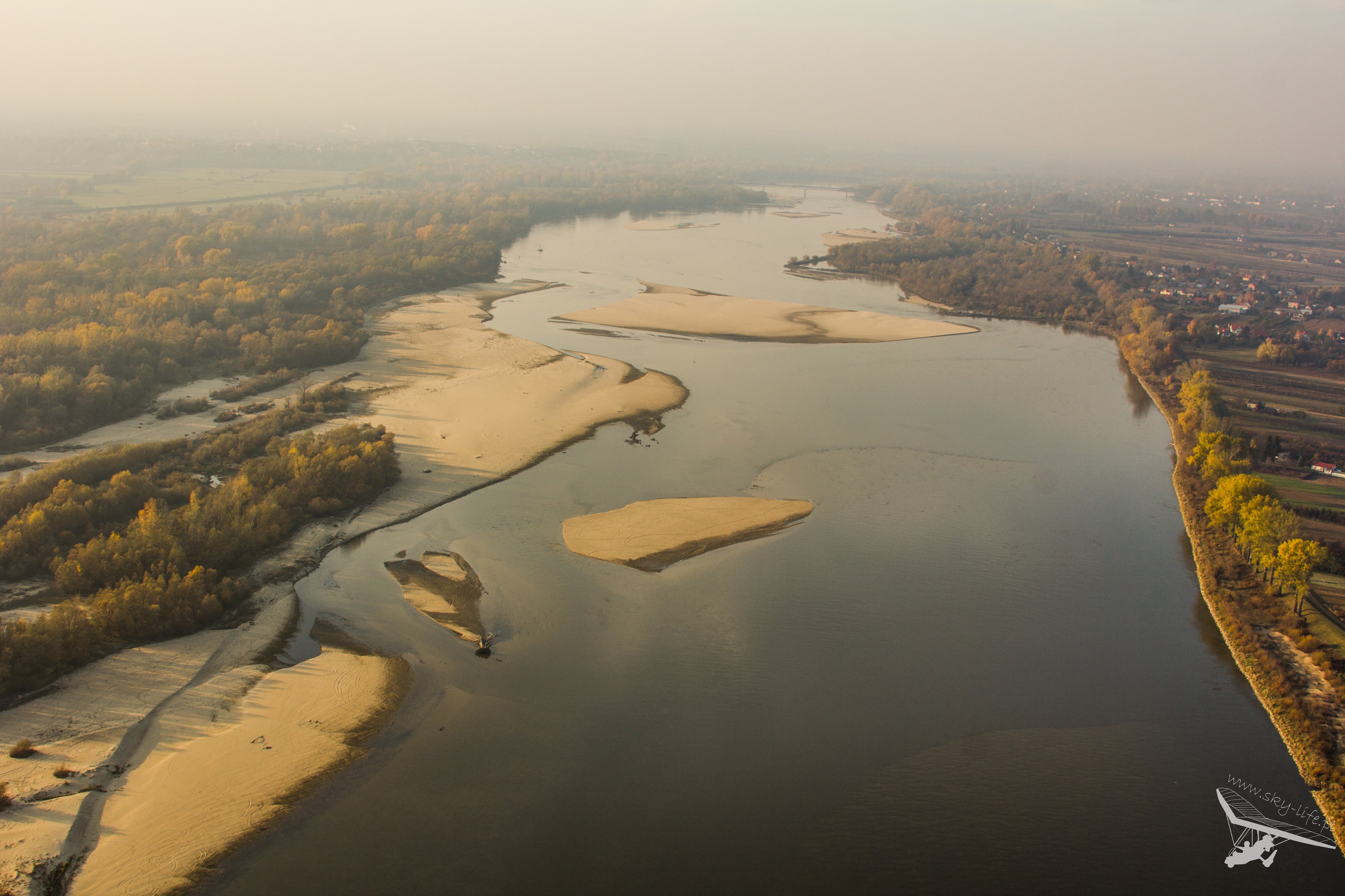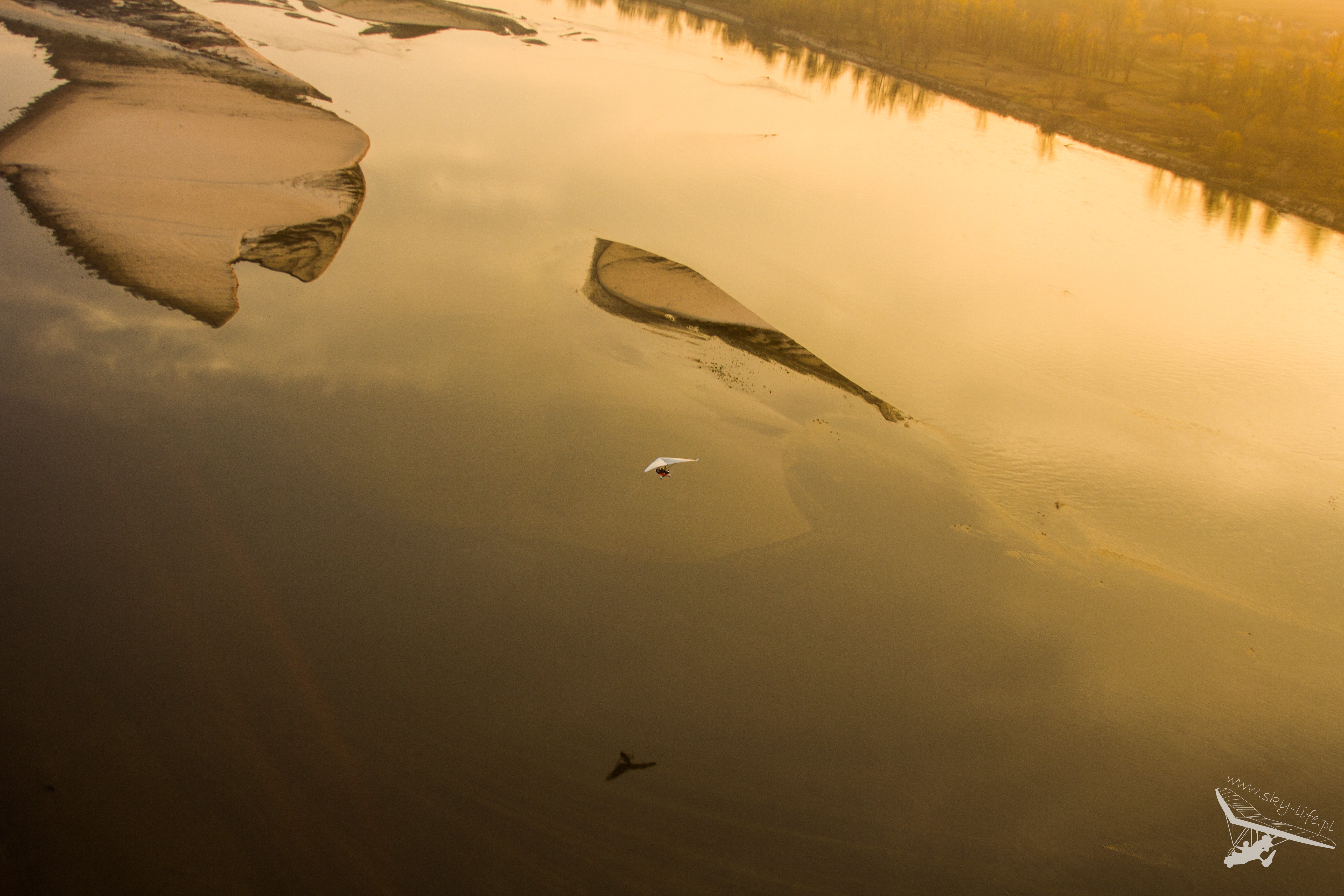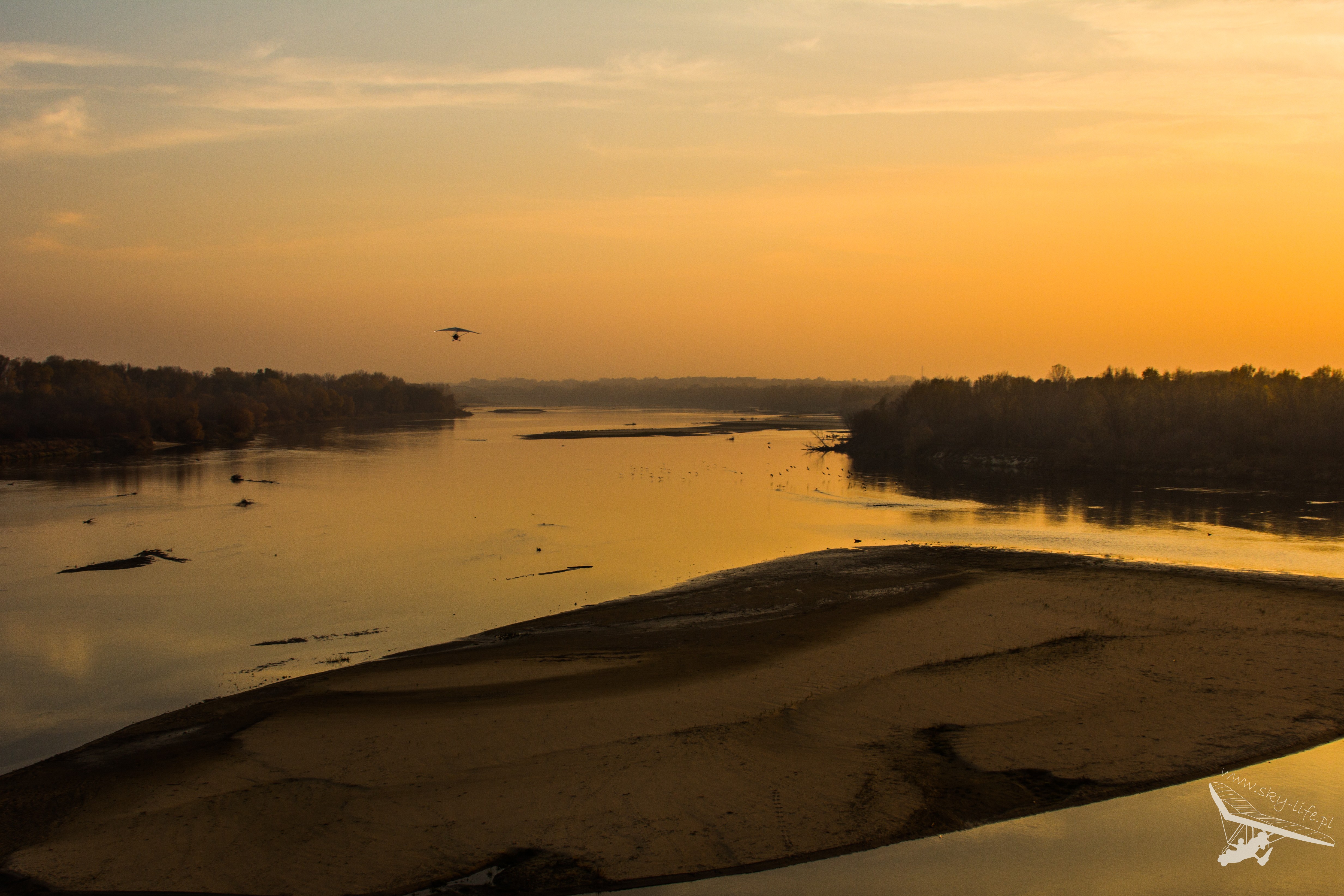 namiarów nie znałem, a że nie miałem przy sobie ani mapy ani GPS postanowiłem polecieć na znane lądowisko w Wildze i tam do niego zadzwonić. Po wylądowaniu okazało się, że on leci… do mnie do Radomia. W końcu udało nam się spotkać i wyruszyliśmy w składzie pary (ja jako prowadzony, on – prowadzący) na zwiedzanie okolicy. Na kolejnym lądowisku padło pytanie – a może byśmy tak polecieli nad Stadion w Warszawie? Szybkie rozeznanie w paliwie, pozostałym czasie do zachodu słońca i decyzja – w sumie to czemu nie?