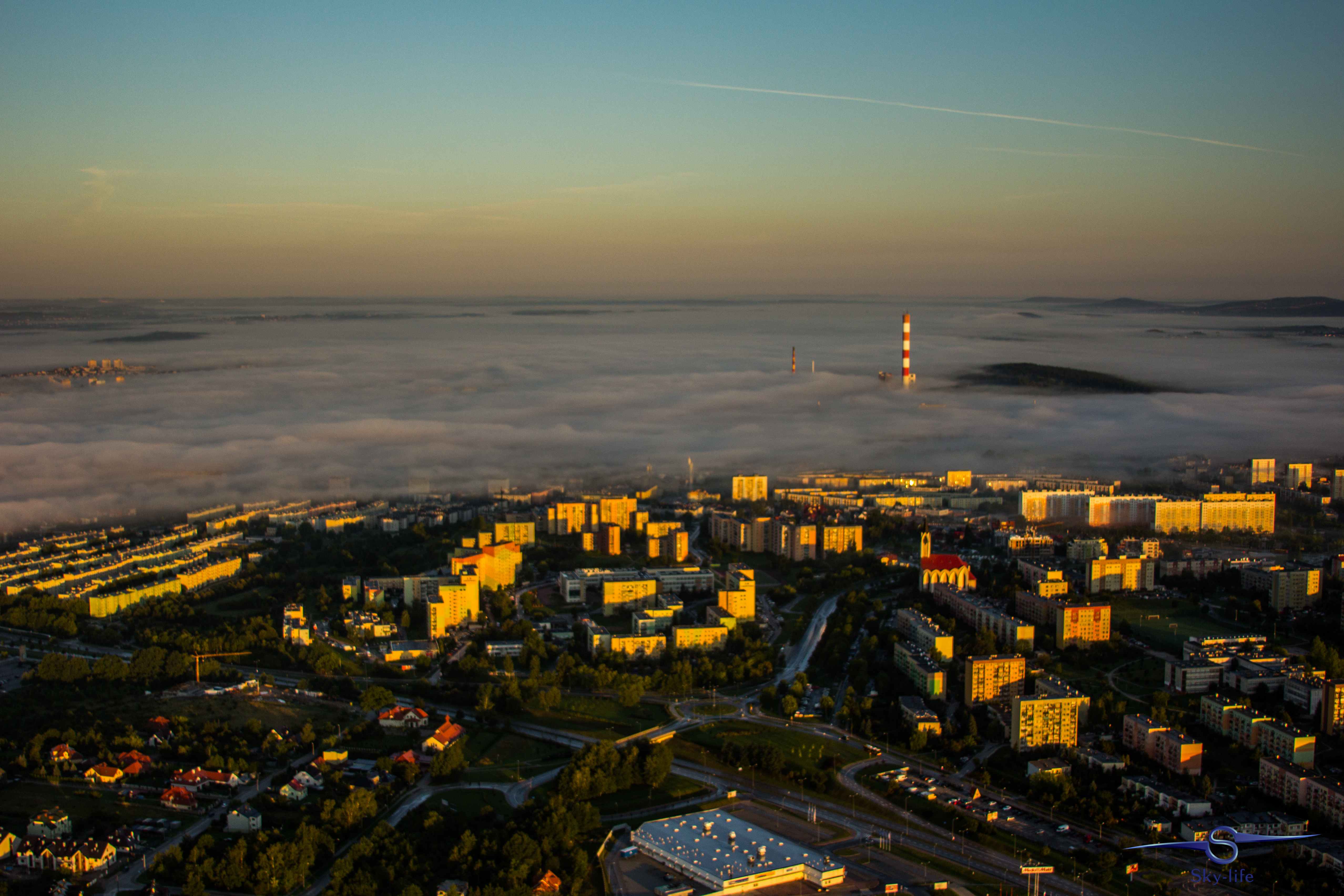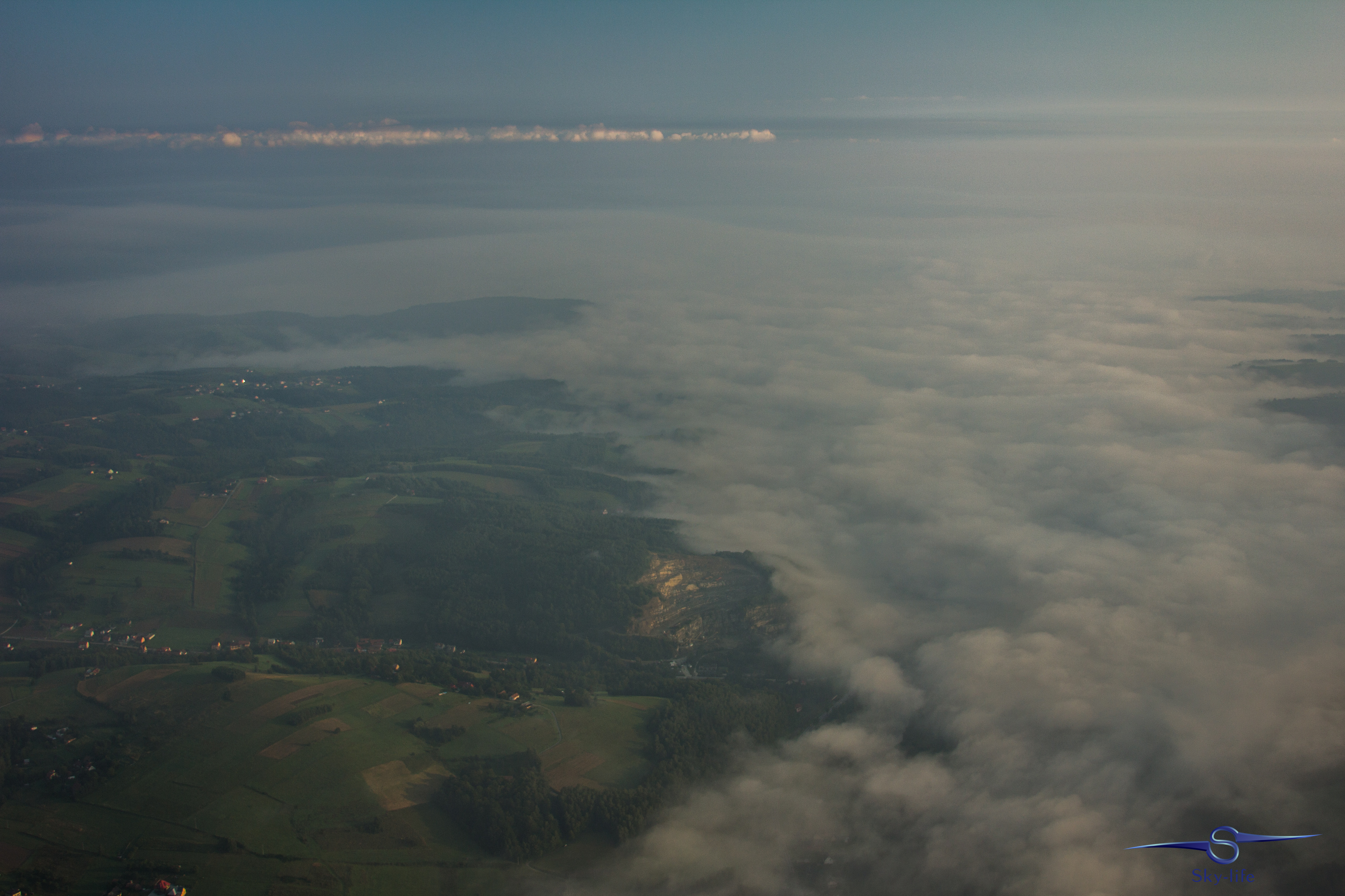 Standardowo pogoda pokazała swoje możliwości i postanowiła się załamać dokładnie na zaplanowany termin wylotu. Może by się udało po południu, ale decyzja już zapadła – lecę następnego dnia z samego rana. Jak myśli się o jakimś wyjeździe, to podróż na miejsce docelowe i z powrotem jest tylko przeszkodą i koniecznością. W przypadku lotnictwa – jest przyjemnością. I to nawet tak wielką, że czasami sam cel jest mało istotny – ważny jest przelot. W przypadku mojej wyprawy „połamałem” trasę wzbogacając ją o kilka elementów. Zaplanowałem 4 duże lotniska po trasie – Kielce, Pińczów, Kraków-Pobiednik i Nowy Targ. Na dwóch z nich nie będzie problemów z paliwem (Pińczów i Kraków), gdyż stacja benzynowa jest zaraz za płotem lotniska. Wariantów tras było bardzo dużo – w zależności od siły wiatru mogę lądować na każdym z nich lub na żadnym. Wszystko zweryfikuje pogoda nad ranem. Start mocno przed 5 rano, jeszcze według zasad VFR Noc. Pogoda marzenie! Całkowity brak wiatru, przepiękne poranne mgły, wstające słońce – widok jedyny w swoim rodzaju. Pierwszy docinek – do Kielc przez Góry Świętokrzyskie to tylko bajeczne widoki z porannymi mgłami. Całkowity brak wiatru i turbulencji – po prostu masełko, że aż można przysnąć. Na lotnisku w Kielcach podchodzimy tylko do low-pasa, bez lądowania i od razu obieramy kurs na Chęciny. Po drodze przepiękny widok Kielc budzących się z porannej mgły. Nad Chęcinami tylko jedno okrążenie i zmiana kursu na Pińczów. P drodze ponownie poranne mgły – tym razem od malowniczej Nidy. Pińczów na szczęście bez mgieł i można bezpiecznie lądować. W sumie tylko na odpoczynek, bo paliwa bez problemu wystarczy do Krakowa. Po starcie, mgieł już jest znacznie mniej, ale to prawdopodobnie przez krajobraz – teren robi się coraz bardziej pagórkowaty i coraz mniej liczne lasy ustępują miejsca polom uprawnym. Po około 45 minutach już witamy się na radiu z Pobiednikiem i ustalamy warunki lądowania – przed sekundą wystartował samolot ze spadochroniarzami, więc jak mamy lądować to teraz. Szybki, ciasny krąg i po 2 minutach już stoimy pod stacją benzynową. Tankujemy tak, żeby nam wystarczyło do samego końca trasy, ale i tak planuje jeszcze wylądować w Nowym Targu. Po starcie z Krakowa zaczyna się już „właściwa” trasa i konkretne już górki. Dziwne uczucie lecieć powyżej 4000ft i raz być 300m nad szczytem, by za chwilę być prawie 1000m nad doliną. Tutaj poranne mgły cały czas występują i szczelnie wypełniają prawie każdą dolinę. Na szczęście mgła już się podnosi i bez problemu można utrzymywać kontakt wzrokowy z ziemią. Po niespełna 45 min lotu docieramy do Nowego Targu. Na radiu dowiadujemy się, że możemy mieć problem z lądowaniem bo lotnisko jest przykryte mgłą. Ponieważ mam zapas paliwa na dalszą trasę postanawiam zrobić jeden krąg i zdecydować – jeżeli nie będzie widać lotniska to odlatuje dalej. Okazało się, że wcale nie jest tak źle i bez problemu mogliśmy wylądować. Przed nami ostatni odcinek trasy – na południe w kierunku Zakopanego, później omijamy strefę zakazu lotów nad polskimi Tatrami, przez Bukowinę Tatrzańską, Białą Spiską (SK) i prosto do celu – Nowa Wieś Spiska. Po wlocie w strefę lotniska wywołujemy: spiska prevádzka, sierra papa… :D